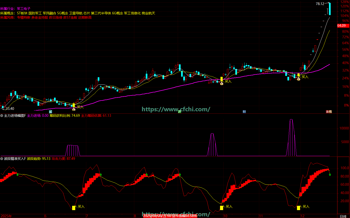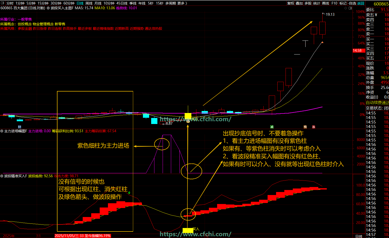 抄底先锋副图加趋势拐点主图,精确地捕捉到股票的向上趋势