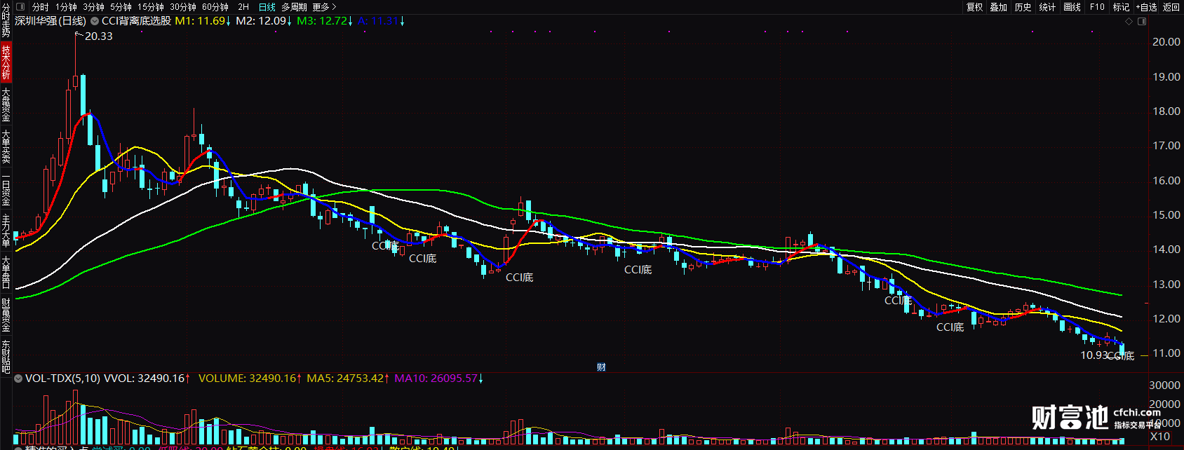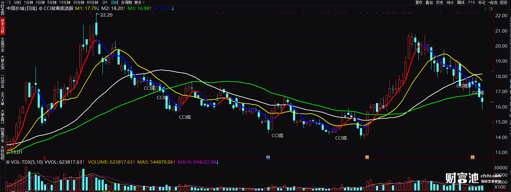 (实战自用cci通达信主图公式 cci底背离图解 选股指标 源码)
