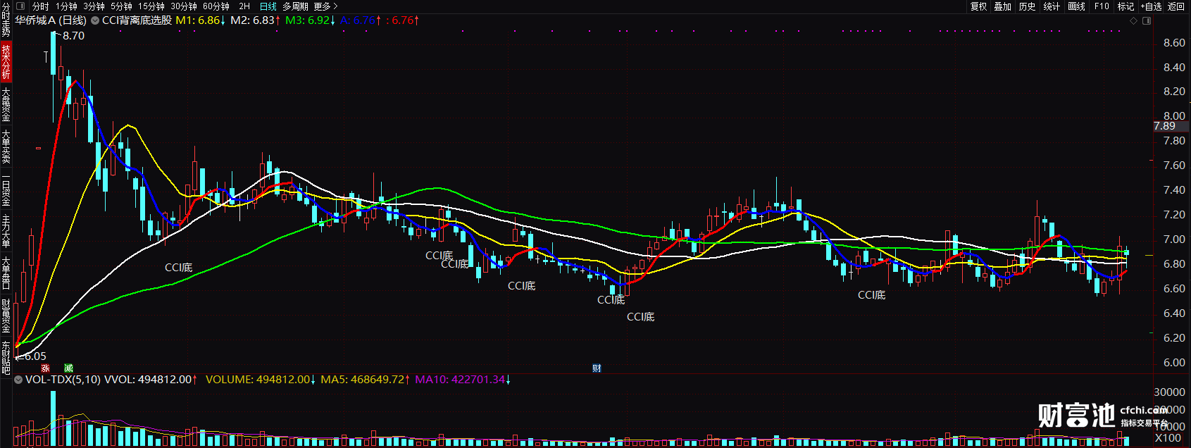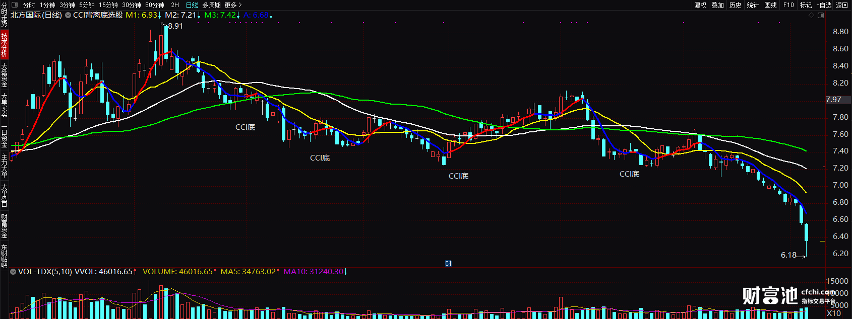 实战自用cci通达信主图公式 cci底背离图解 选股指标 源码