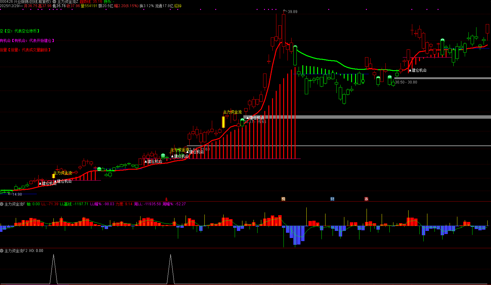 当以下三个条件同时满足时,指标会提示 “▲建仓机会” 信号,这是主要买入时机: