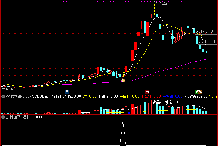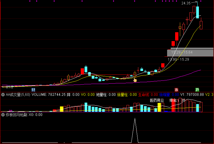 (通达信 炸板回马抢 主图 副图 选股指标 量化时代妖股启动标志 )