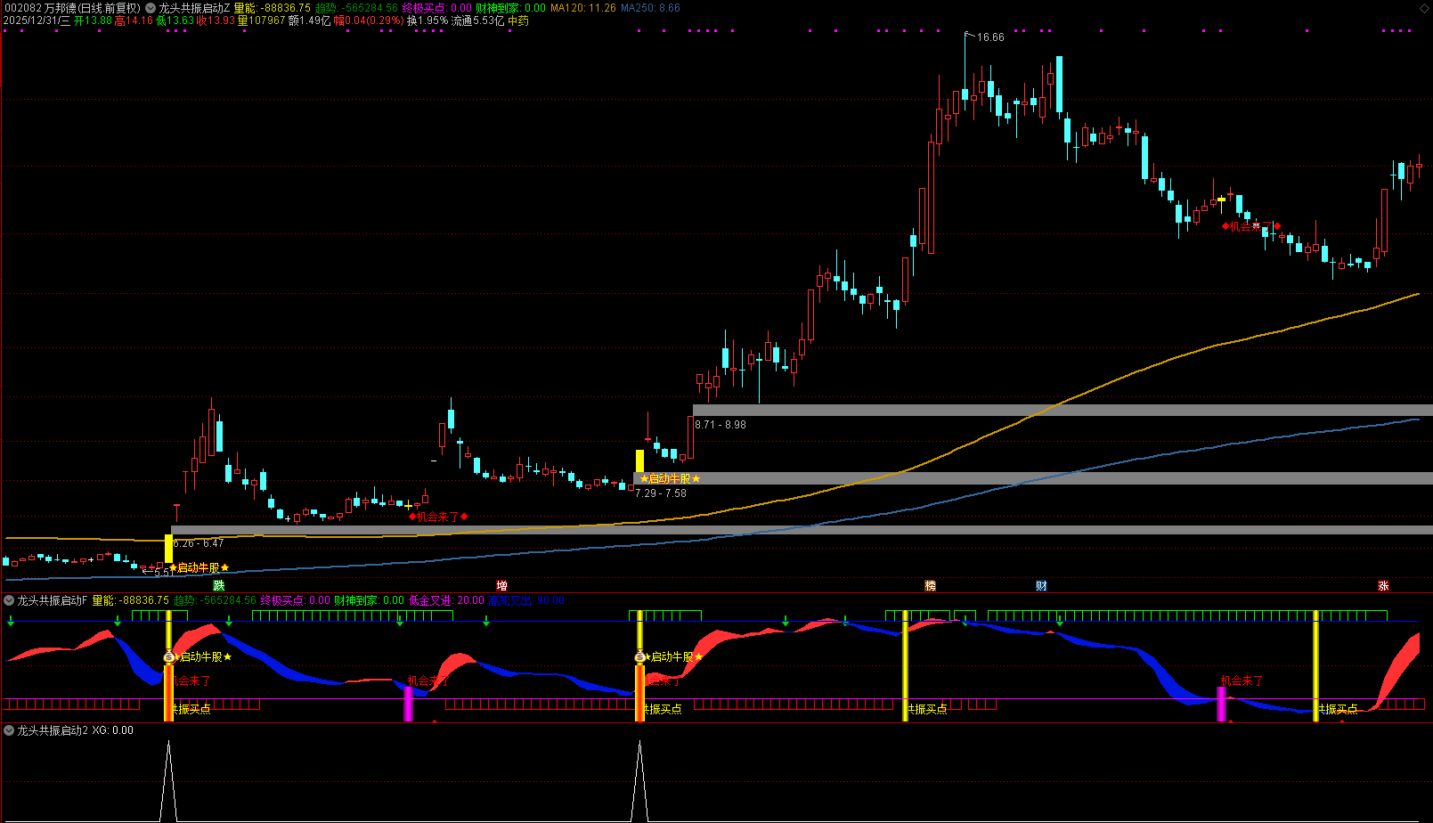 (通达信【共振启动】主副图+2选股 龙头股起爆共振,高含金量共振买点)