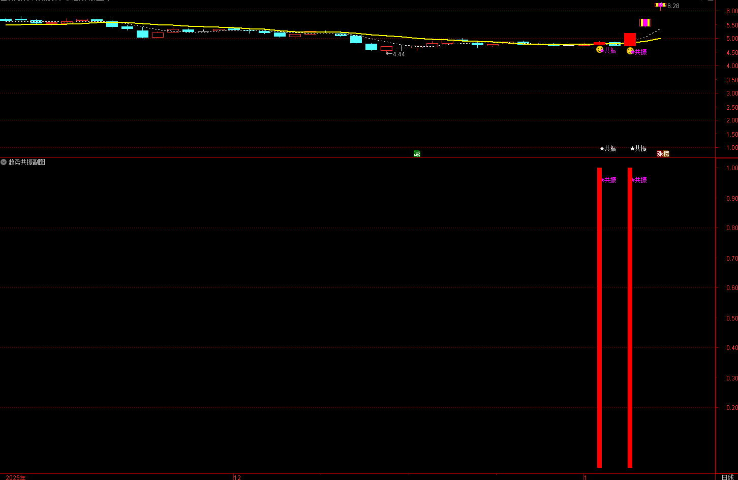 通达信趋势共振主副选公式的设计思路是:当多个技术指标同时发出多头信号,且价格处于特定位置时,判定为 “趋势共振” 买点。核心是通过 MACD、KDJ、RSI、MTM 等多个技术指标的多头信号共振,叠加价格位置条件,筛选出潜在的趋势反转或延续的个股。