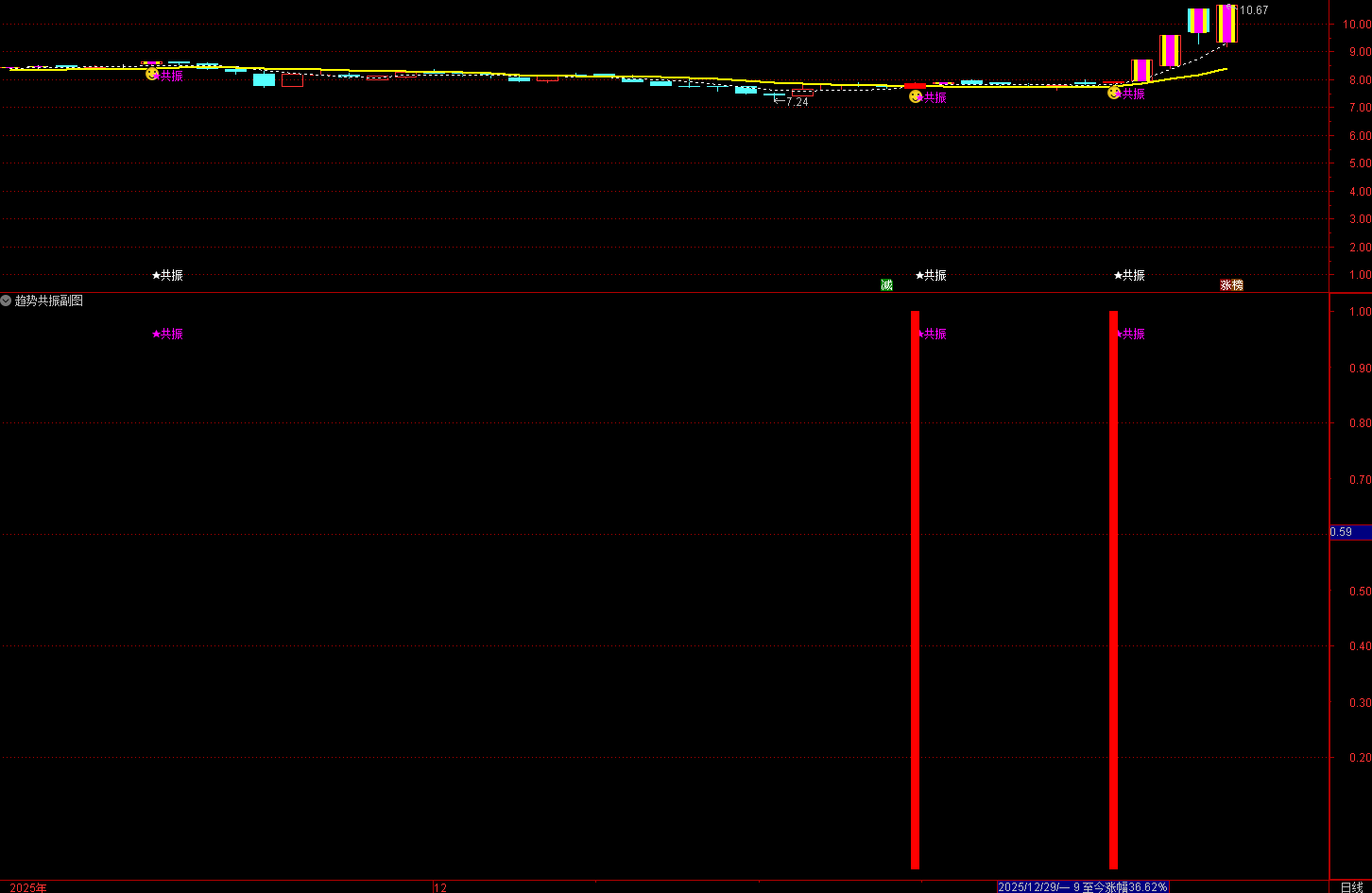 【新版双紫擒龙】副图选股指标强势起爆+双紫擒龙+动能二号+共振追涨 独创三紫一红选股