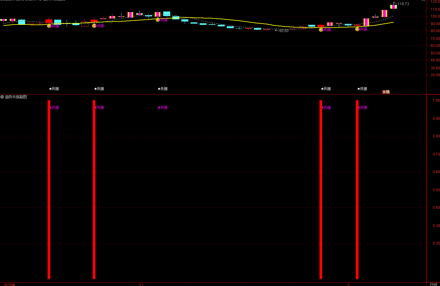(通达信趋势共振主副选公式的设计思路是:当多个技术指标同时发出多头信号,且价格处于特定位置时,判定为 “趋势共振” 买点。)