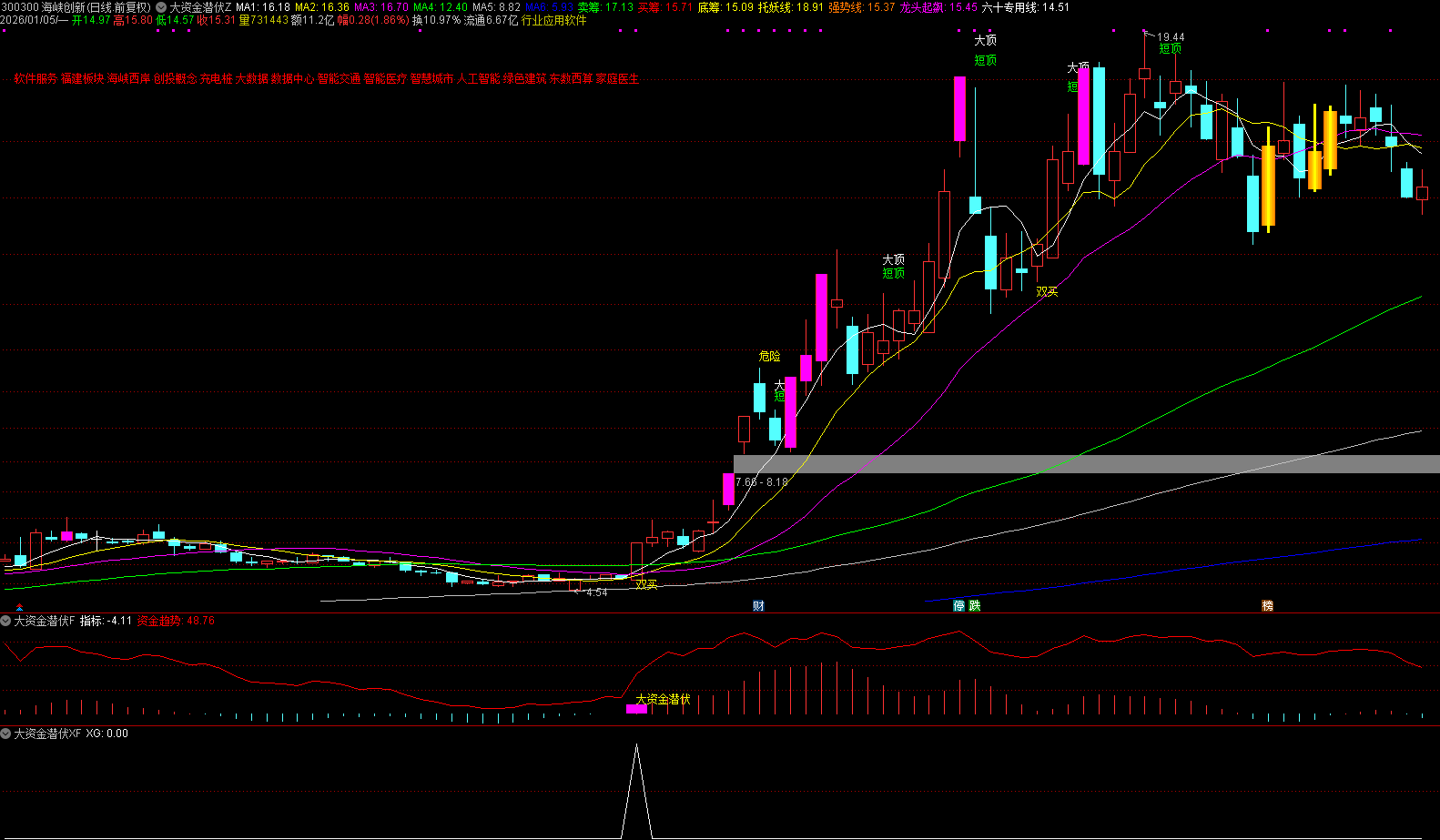 通信达【主游资金流入+黄金眼】套装指标1主图2幅图3选股专为捕获主力游资资金进出设计的套装指标