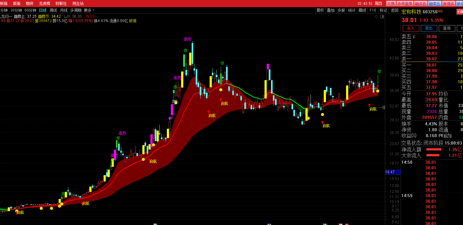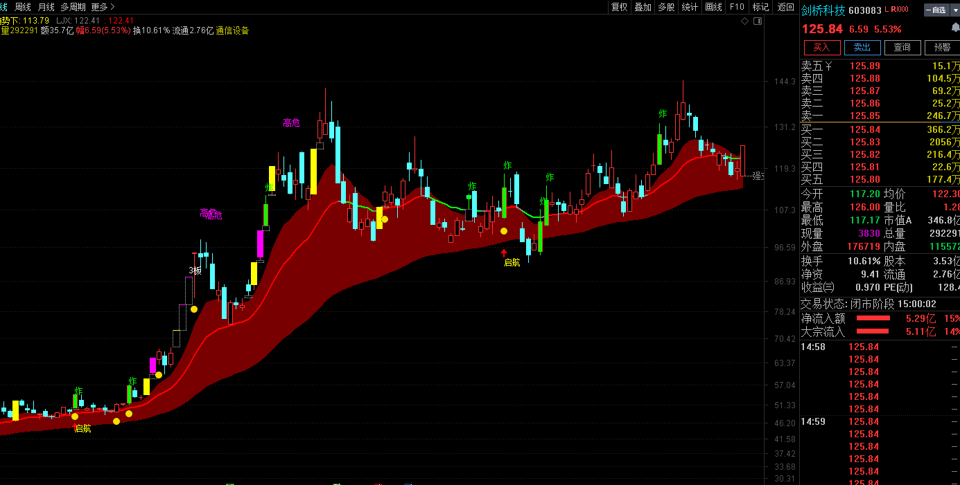 只要背景是暗红色趋势带,且龙脊线(生命线)是红色的,说明个股处于主升浪。