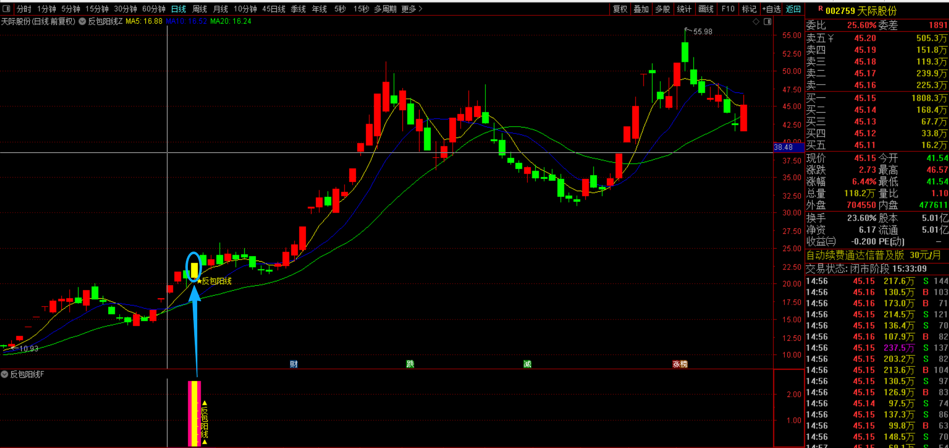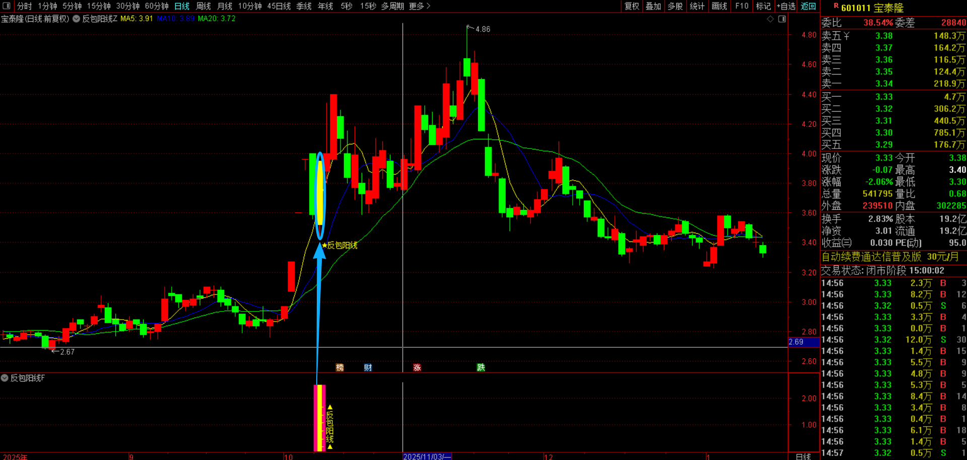 通达信【反包阳线】主副图选股指标 识别一根反转大阳线的反转信号,信号少而精胜率高 源码无未来函数手机电脑通用
