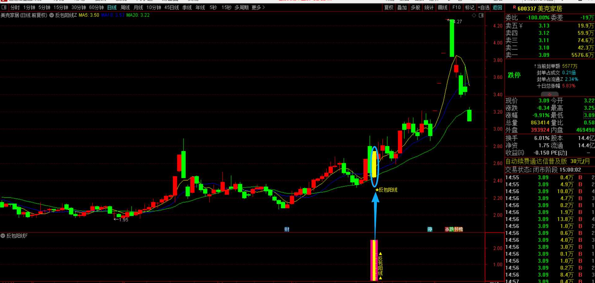 (通达信【反包阳线】主副图选股指标 识别一根反转大阳线的反转信号,信号少而精胜率高 源码无未来函数手机电脑通用)