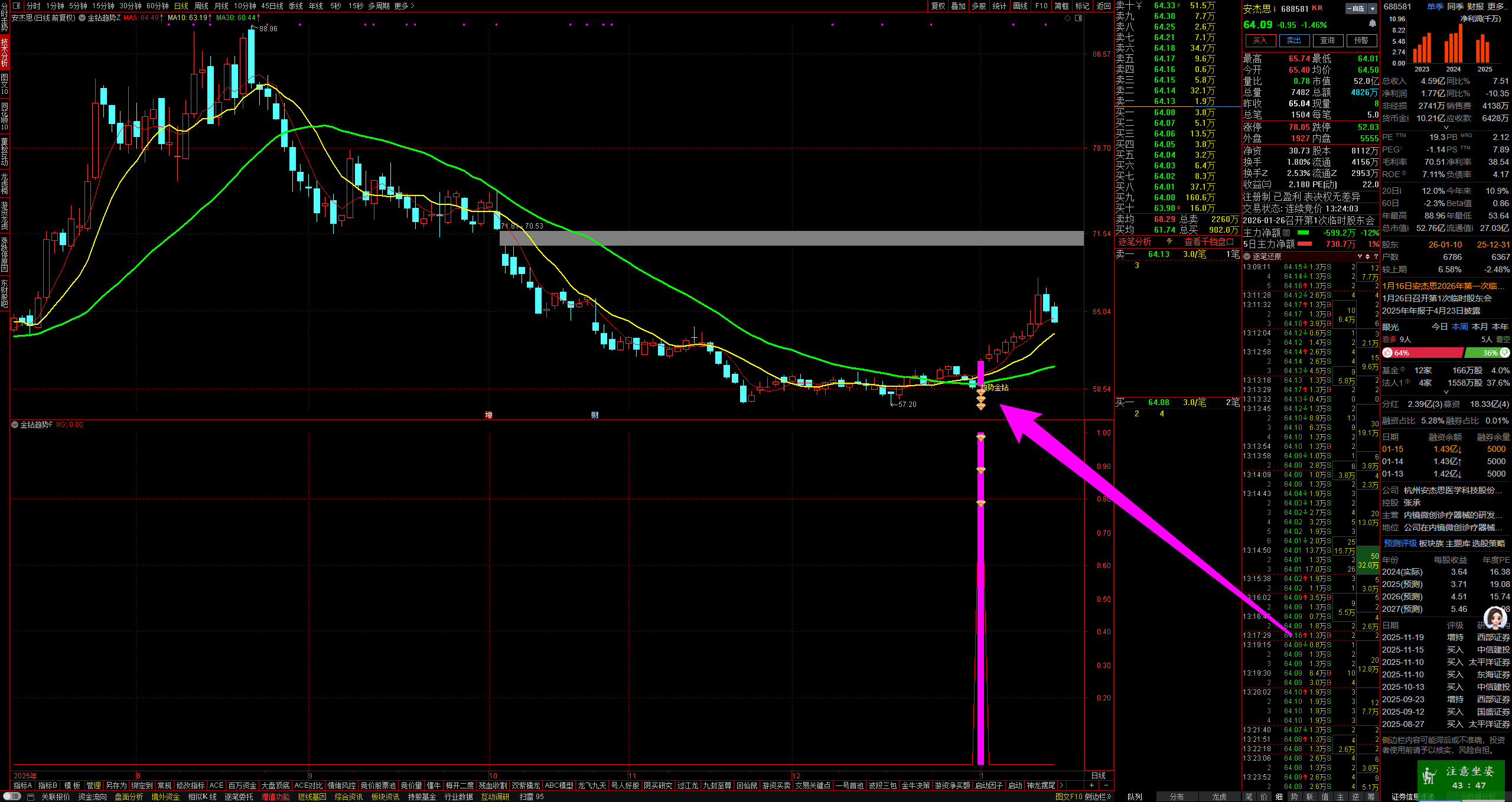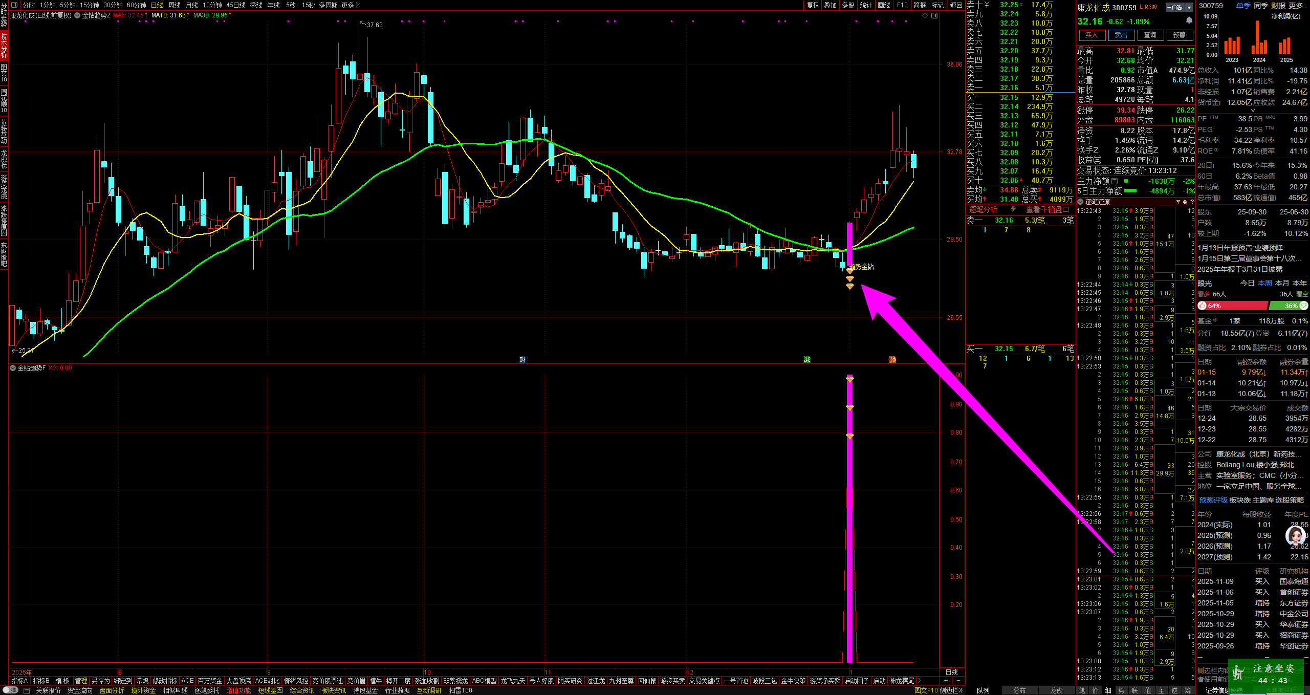 精华版:分时主力吸筹:增加了买入点提示,效果不错。手机电脑都可用。