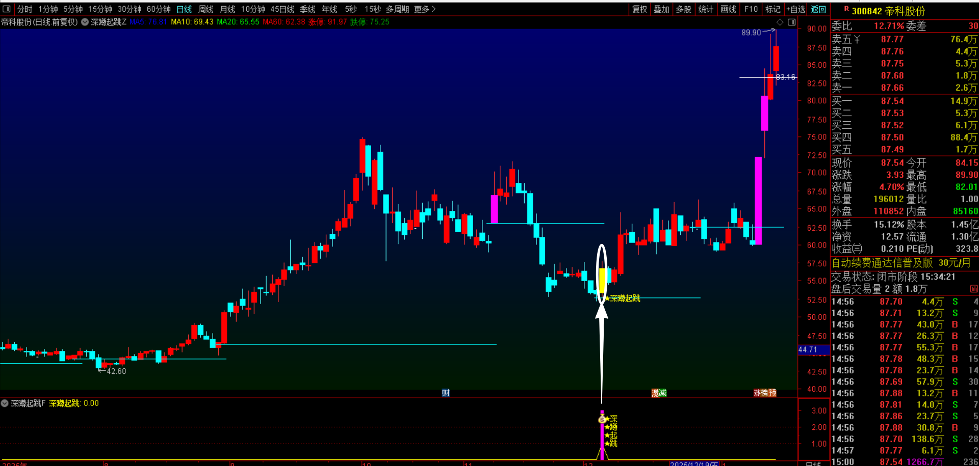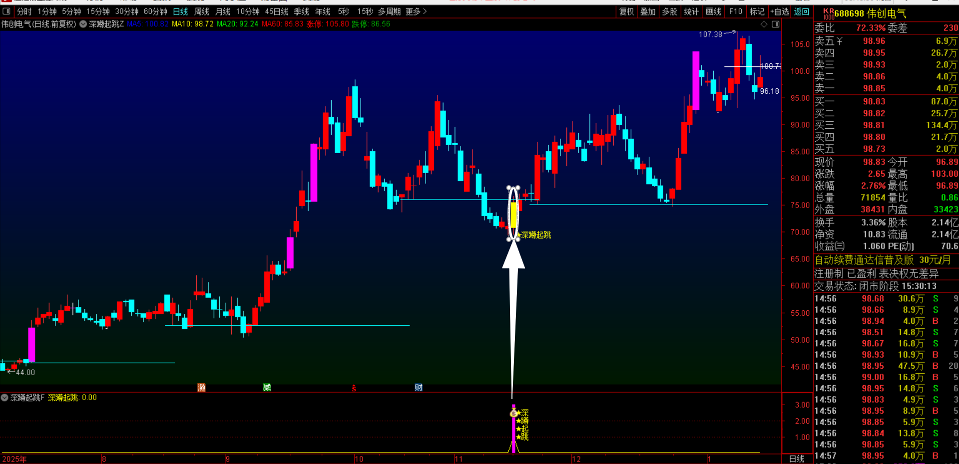 (通达信【深蹲起跳】主副图选股指标 基于趋势护航+深度洗盘+强势反转三重逻辑构建的动态量化策略 无未来函数手机电脑通用)