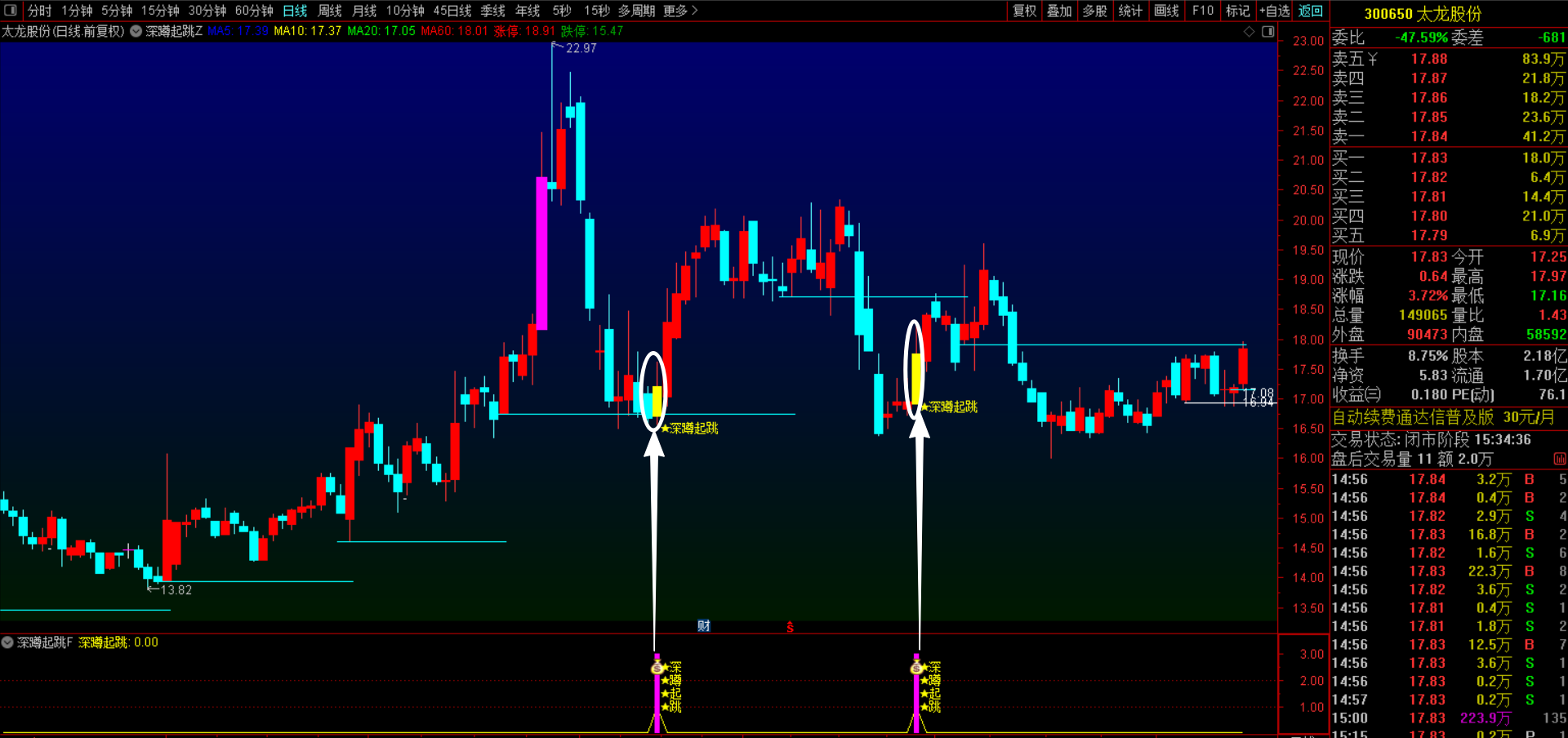 精华版:分时主力吸筹:增加了买入点提示,效果不错。手机电脑都可用。