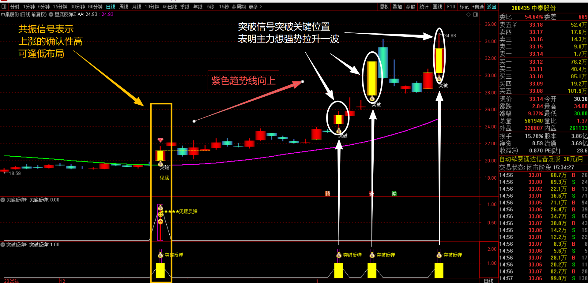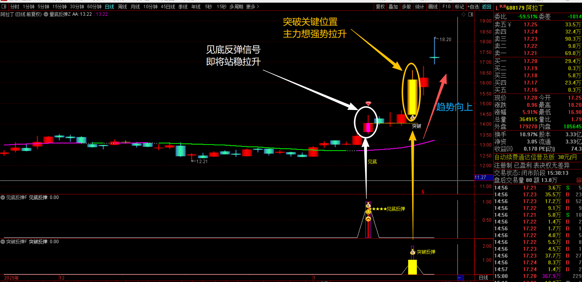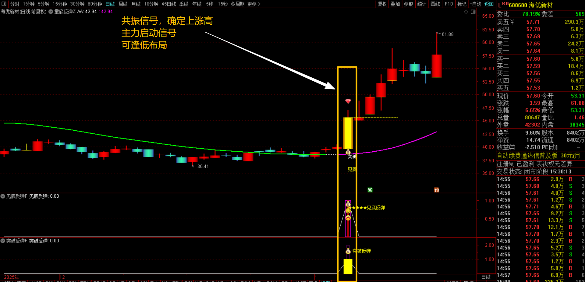 (通达信【量底反弹】1主2副图3选股指标 量能突变 + 绿紫多空线护航,捕捉突破底部反转趋势点无未来函数,手机电脑通用)
