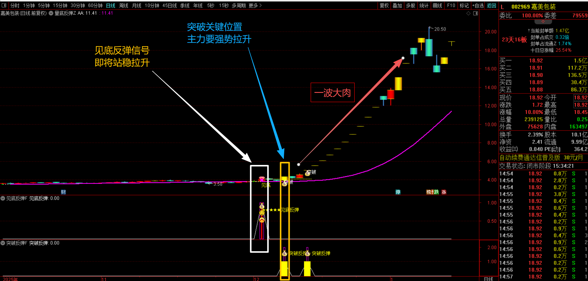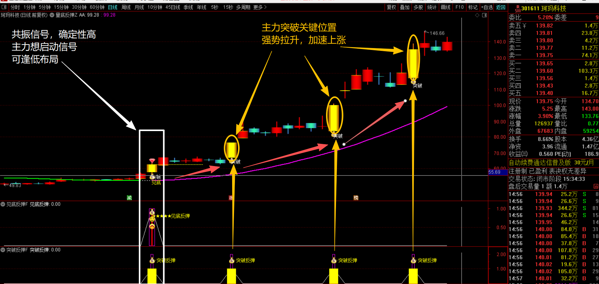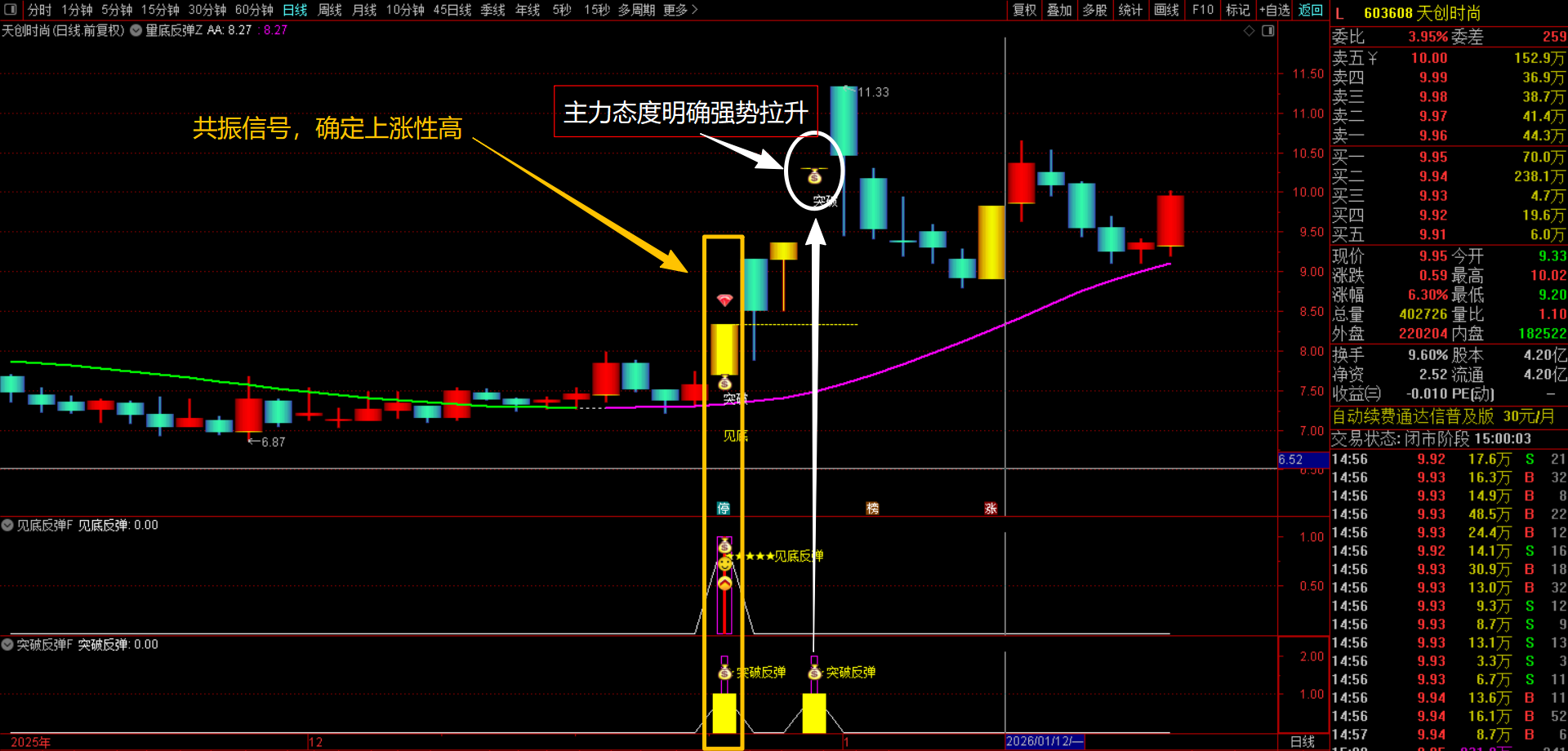 (通达信【量底反弹】1主2副图3选股指标 量能突变 + 绿紫多空线护航,捕捉突破底部反转趋势点无未来函数,手机电脑通用)