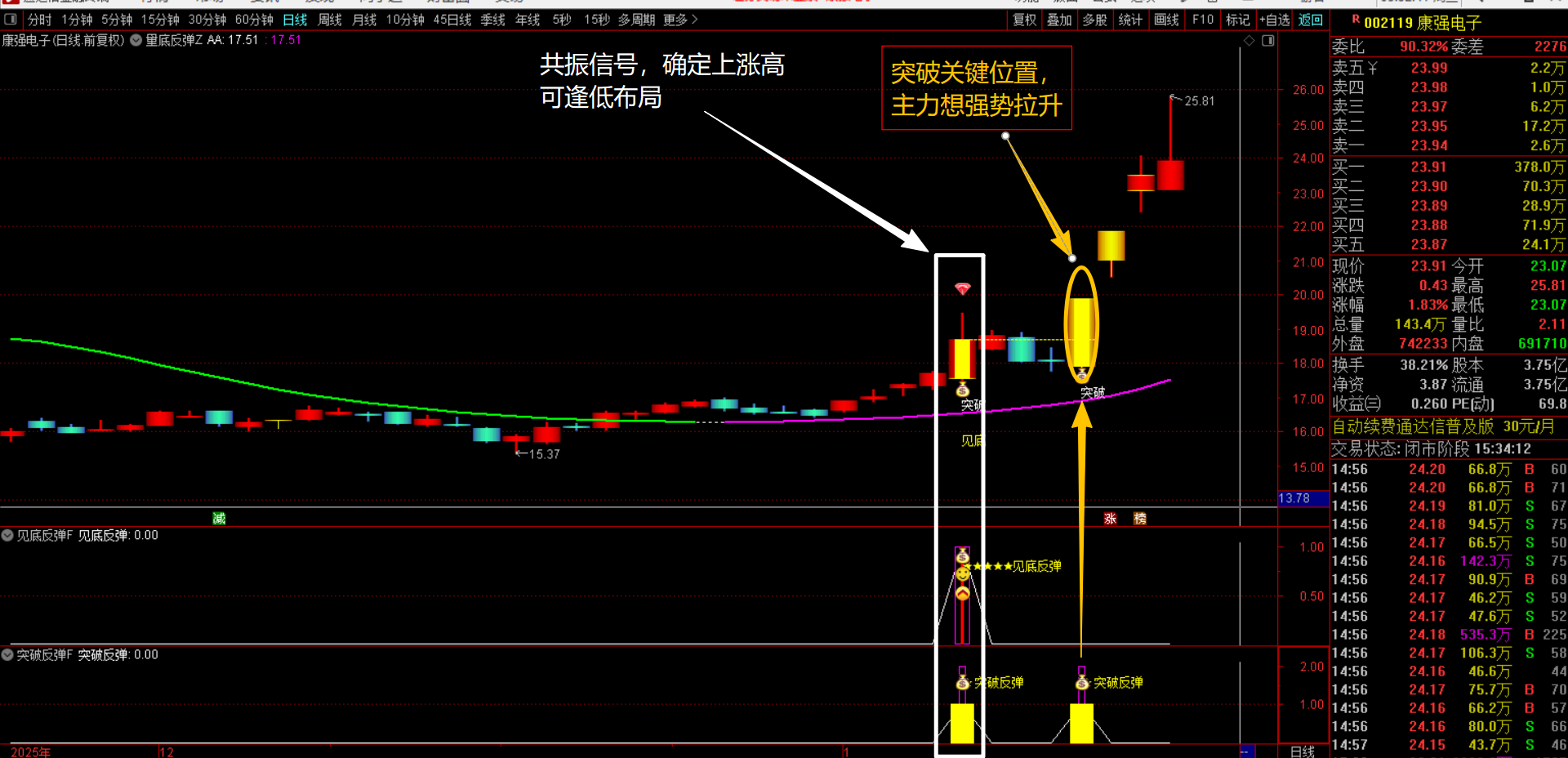 精华版:分时主力吸筹:增加了买入点提示,效果不错。手机电脑都可用。