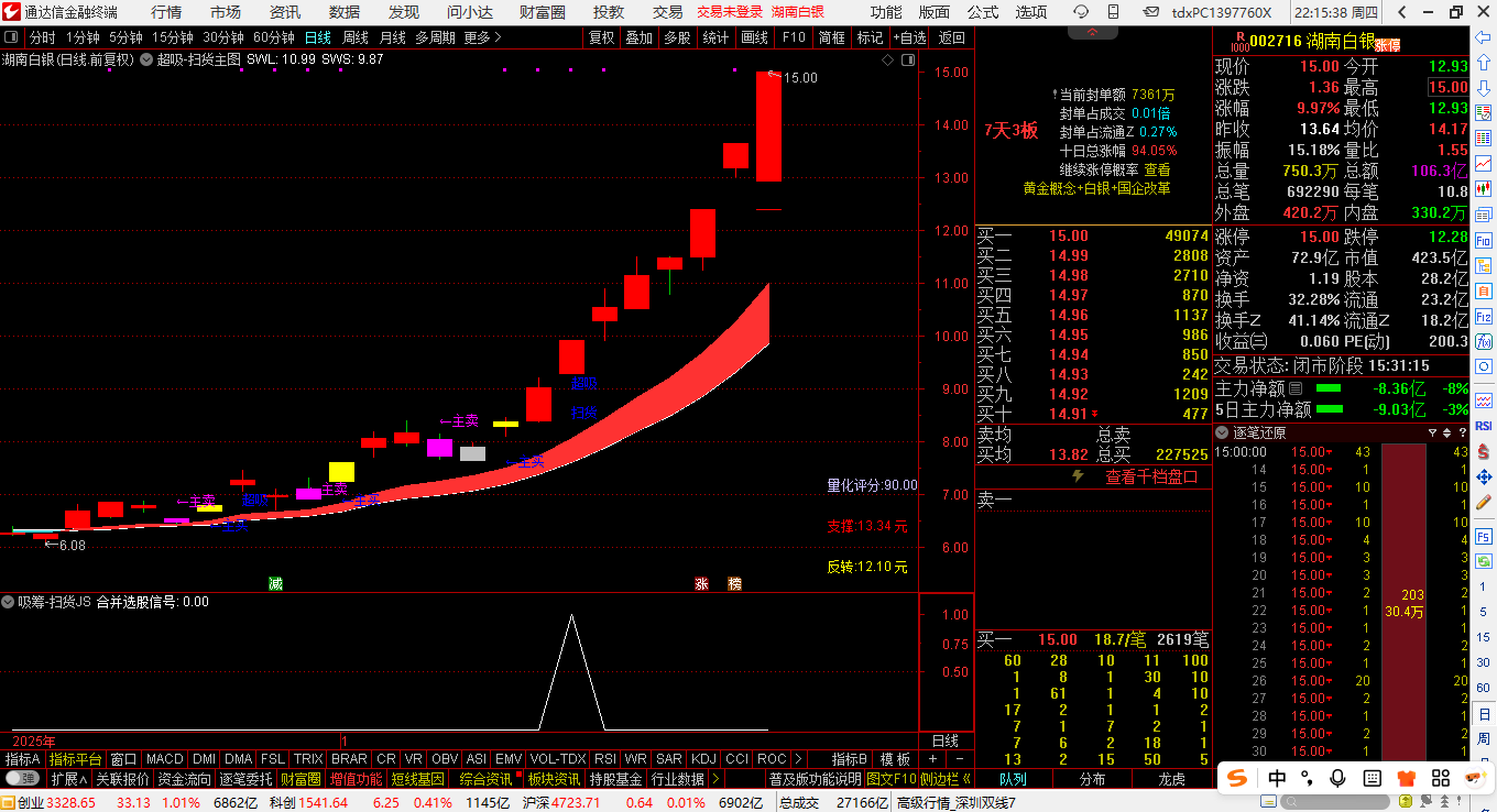 (注:选股器含DYNAINFO、DVOL函数,主图指标含CAPITAL函数,但不影响效果,放心使用)