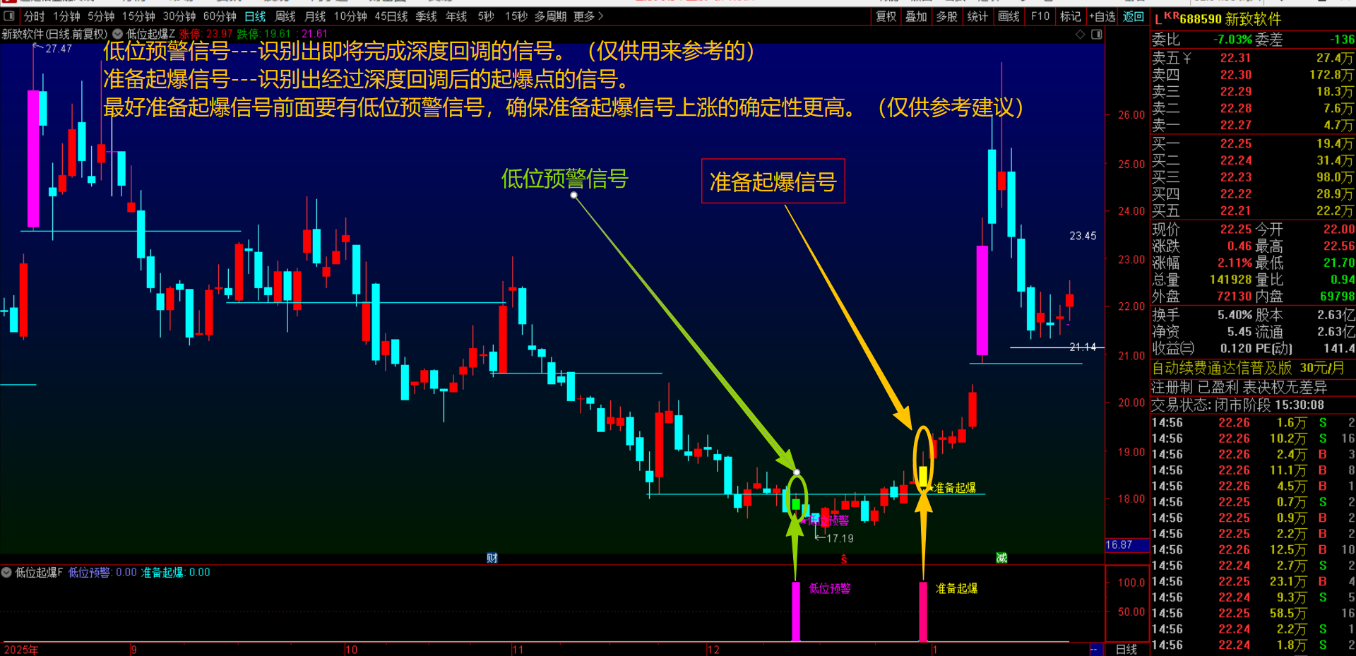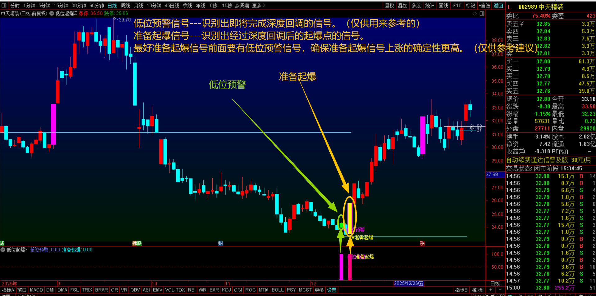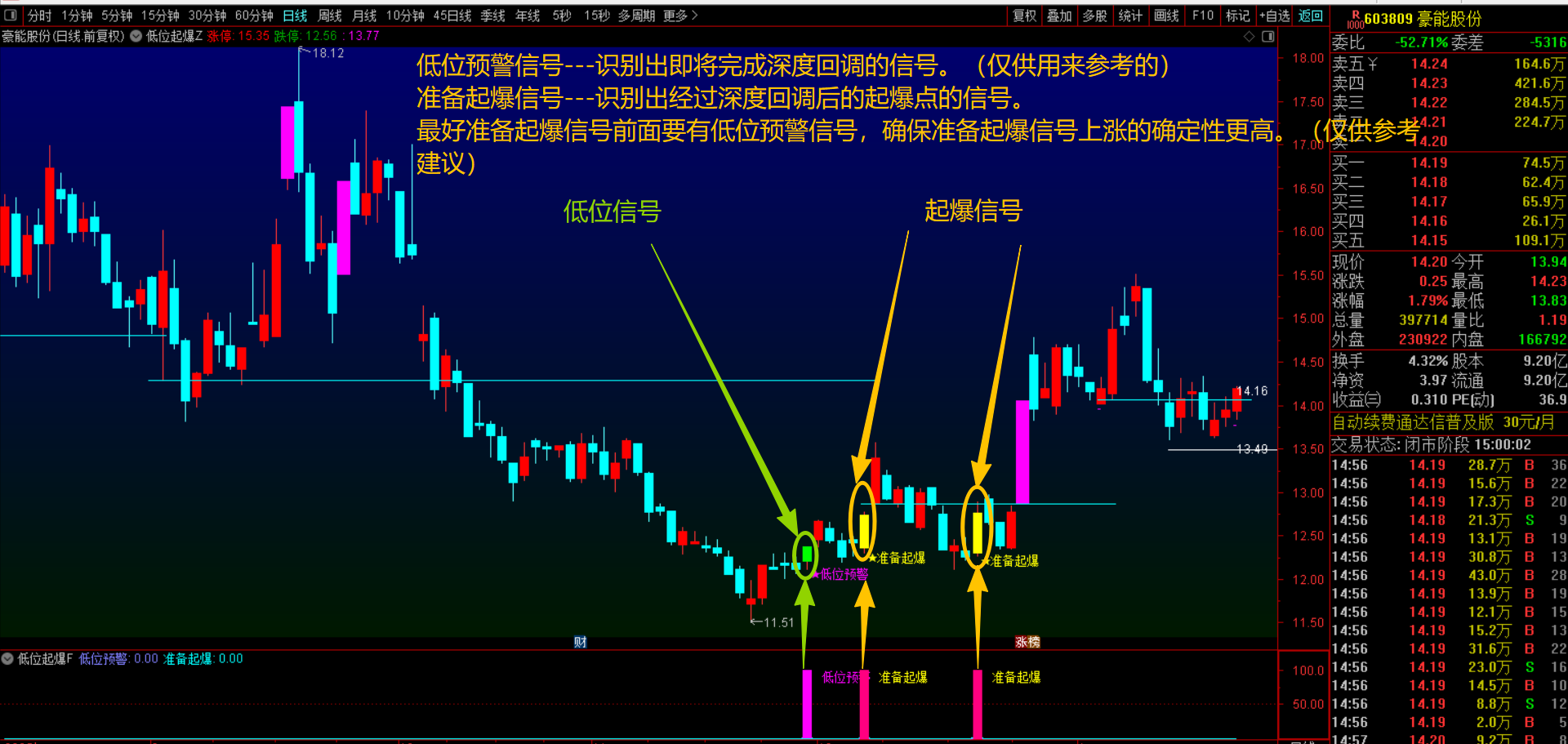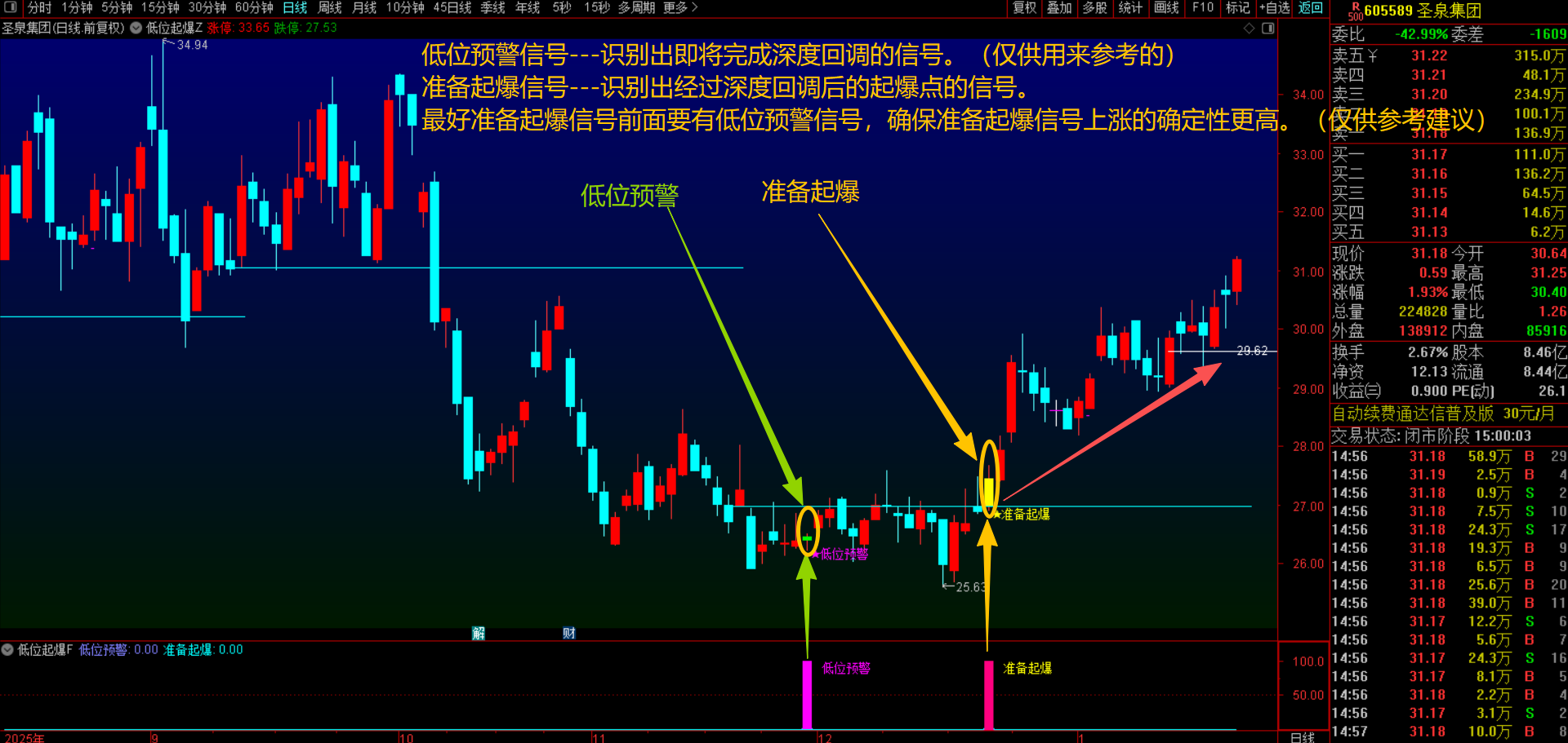 低位预警信号---识别出即将完成深度回调的信号。(仅供用来参考的)