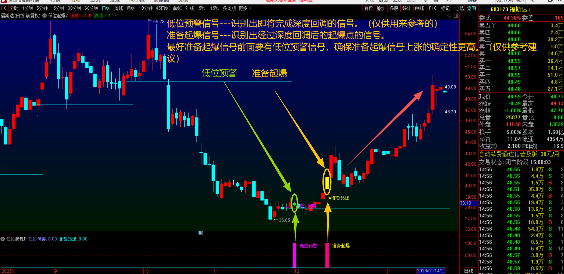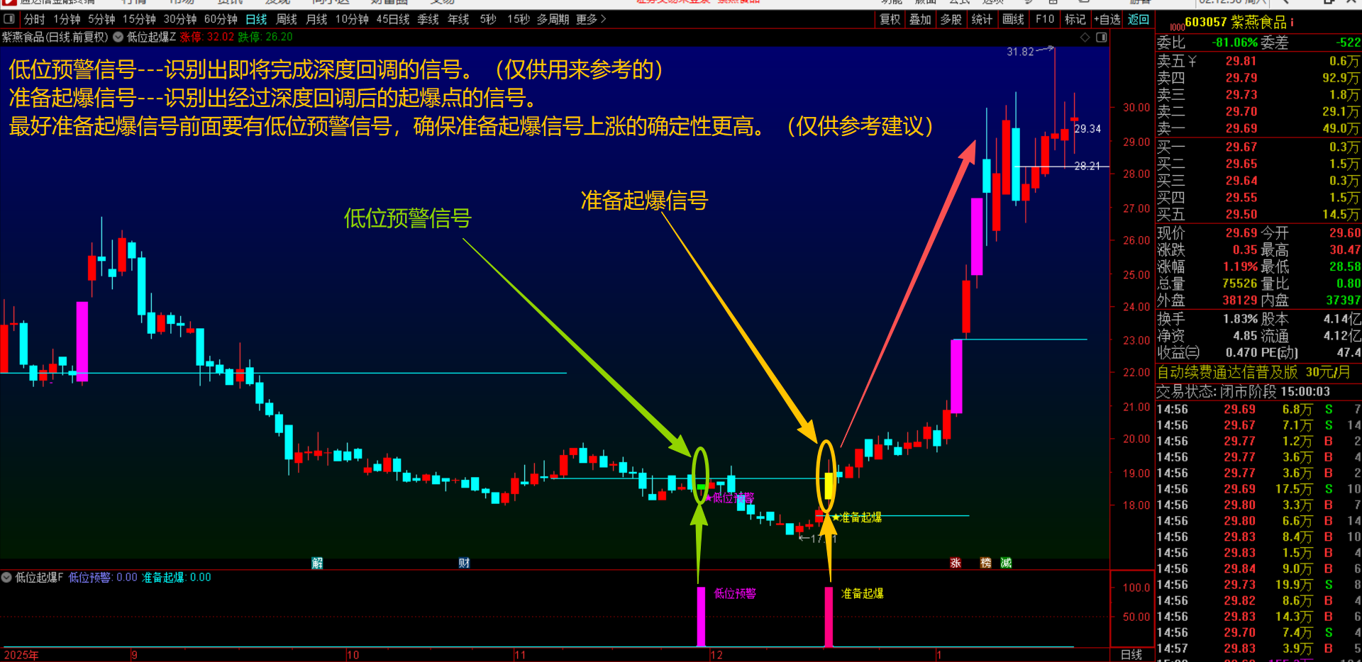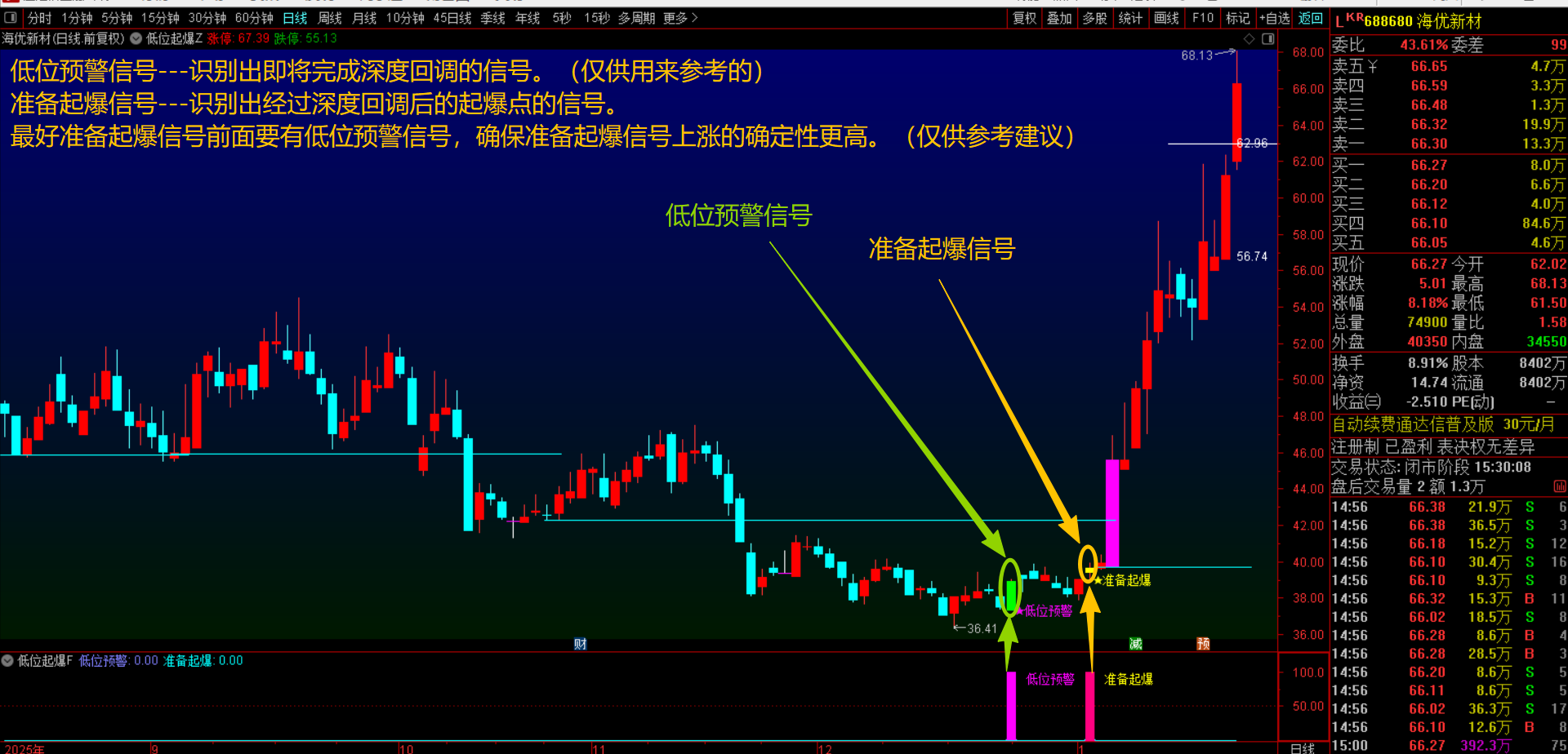 最好准备起爆信号前面要有低位预警信号,确保准备起爆信号上涨的确定性更高。(仅供参考建议)