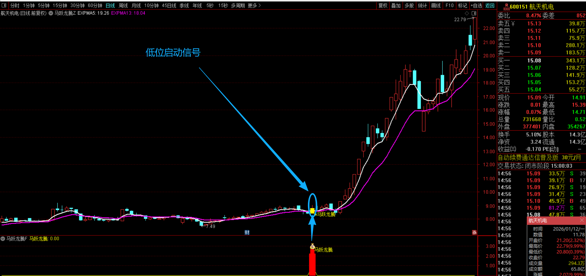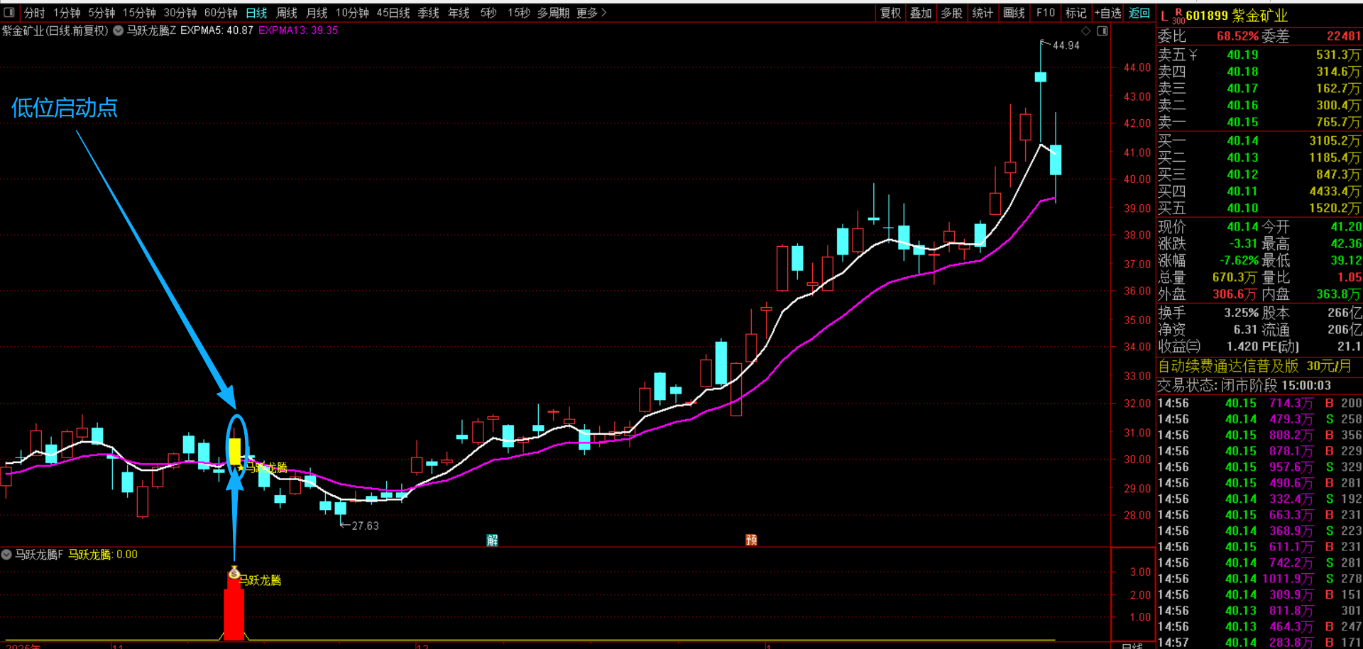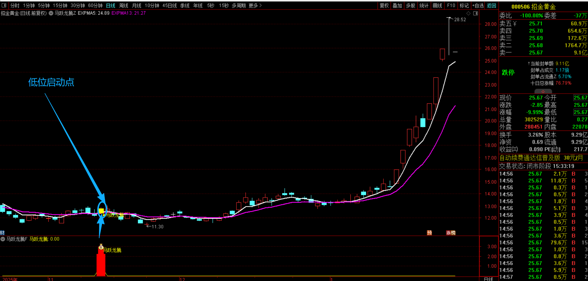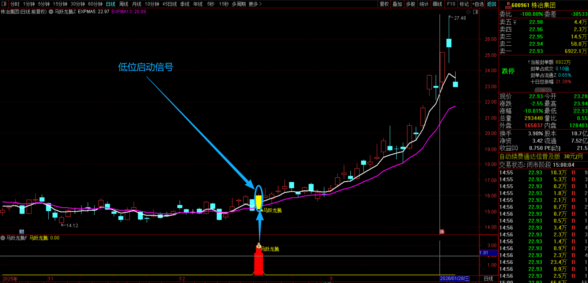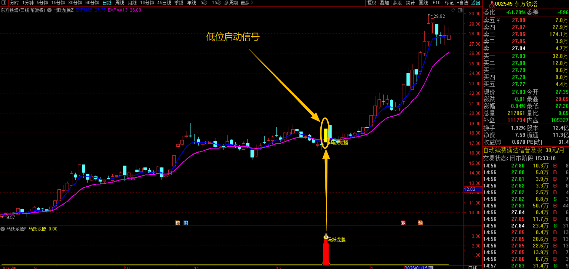 (通达信【马跃龙腾】主副图选股指标 爆发捕捉牛股 相对波段低位寻龙捉妖 源码无未来函数手机电脑通用)