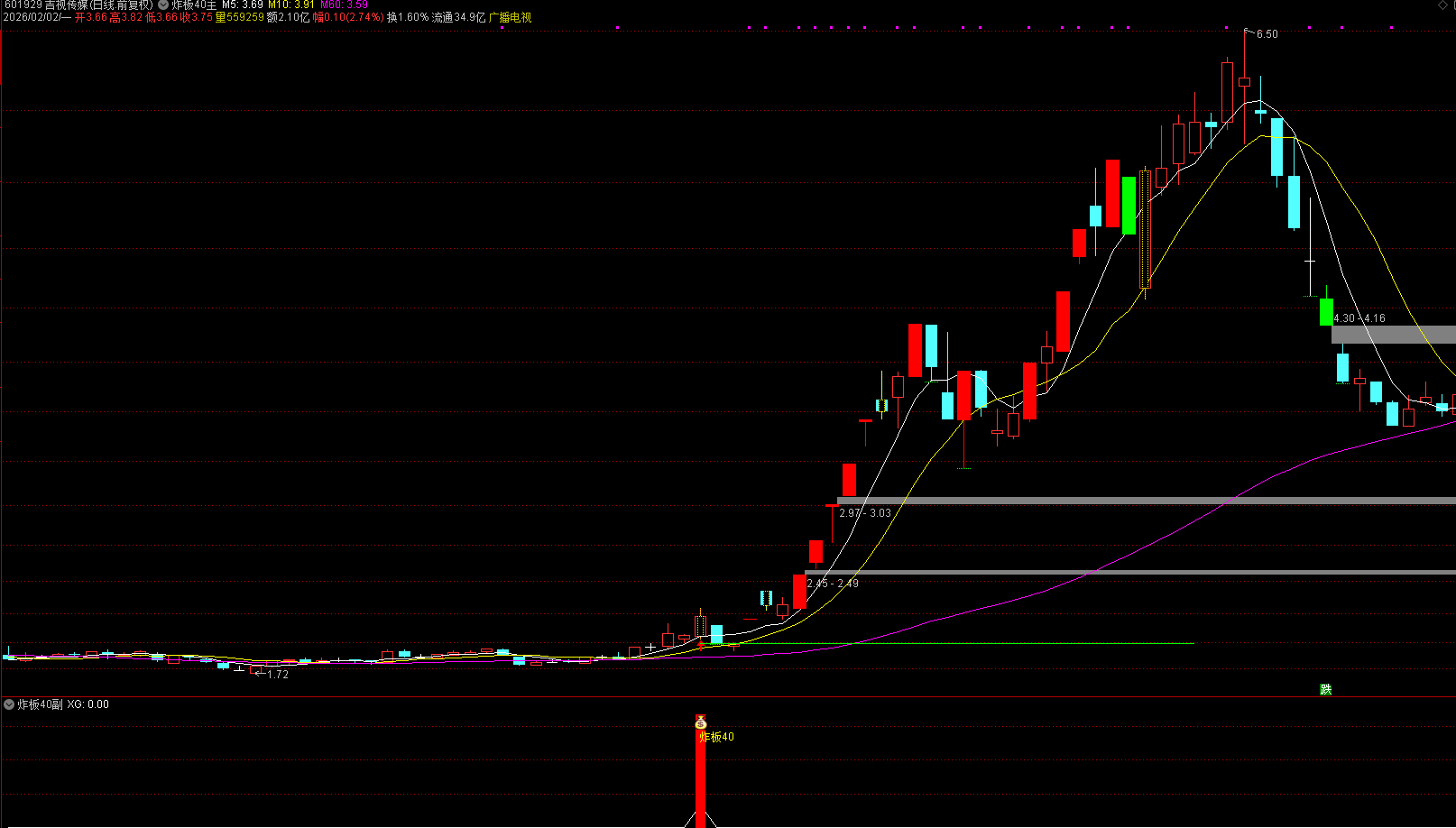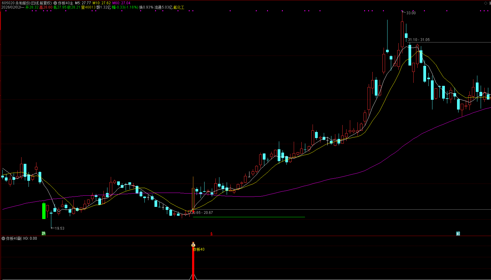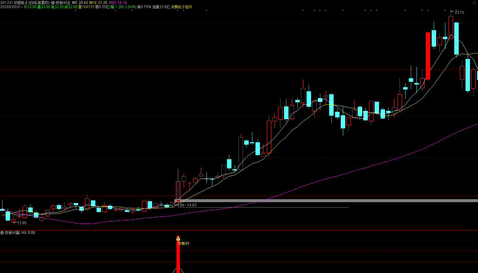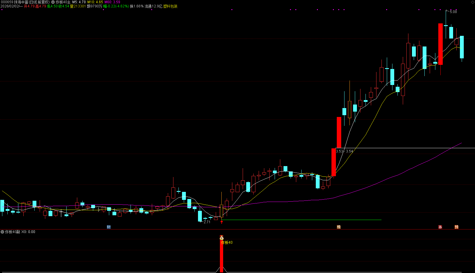 前提条件:所谓的炸板40模式中的40,近40个交易日内(约两个月)无任何涨停板;但是40日之前曾出现过首板或二连板(不超过三板),表明该股具备被主力关注的基础;