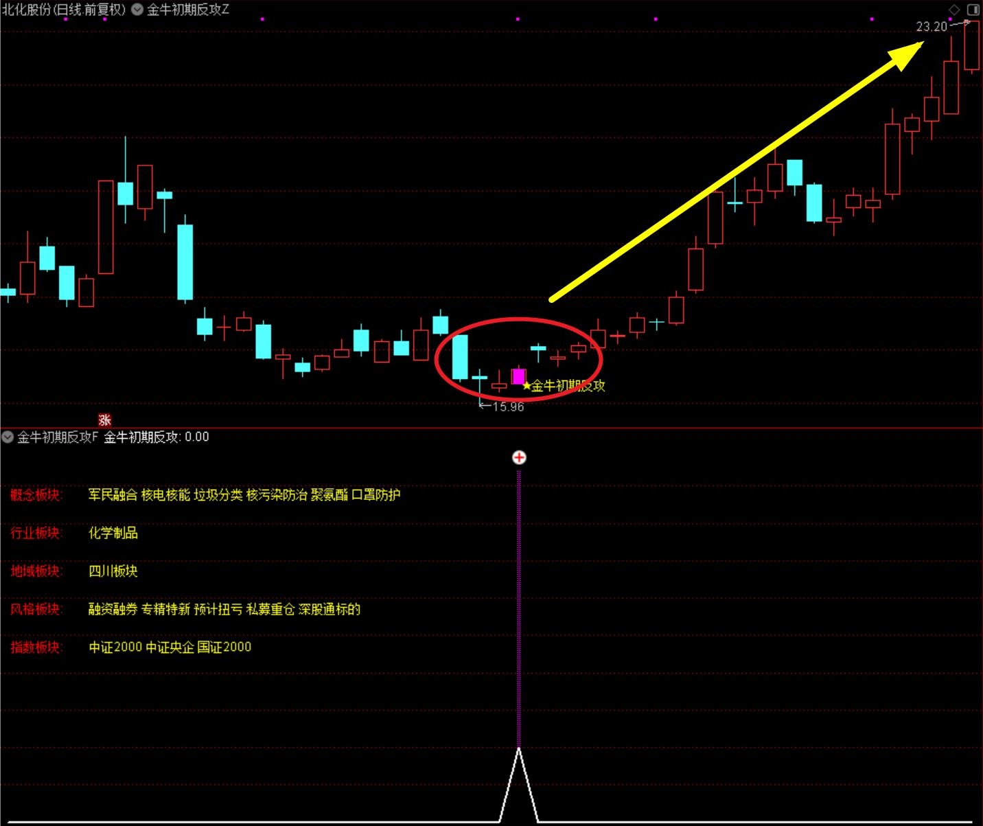 (通达信【金牛初期反攻】副图选股指标 多维度条件组合 精准识别处于初期的潜在机会 源码无未来函数)