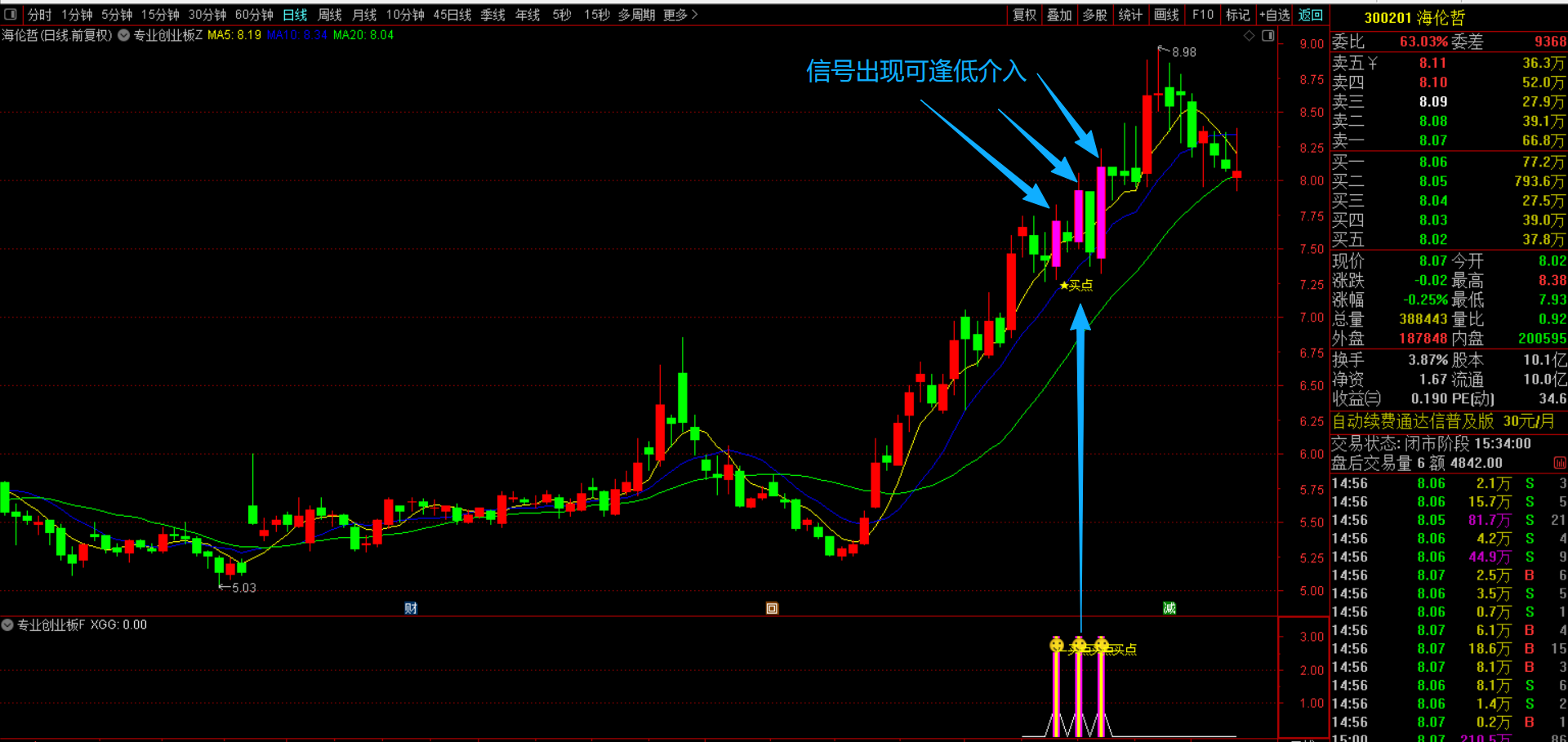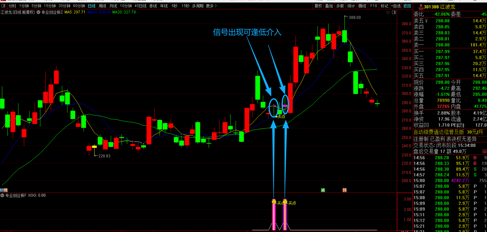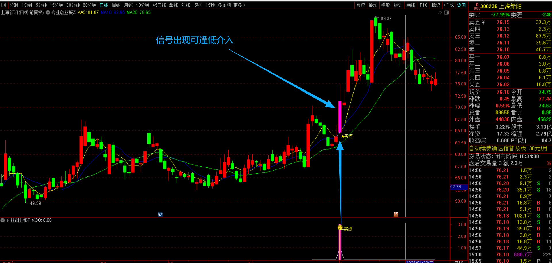 (通达信【专业创业板】主副图选股指标 短线交易设计,筛选昨日强势放量,均线多头排列 源码无未来函数手机电脑通用)
