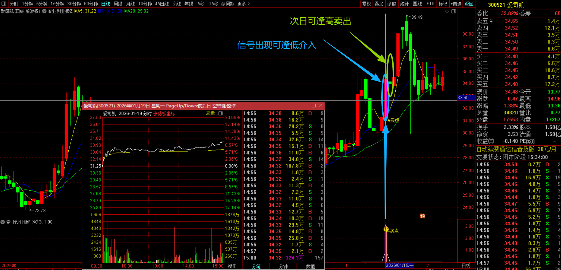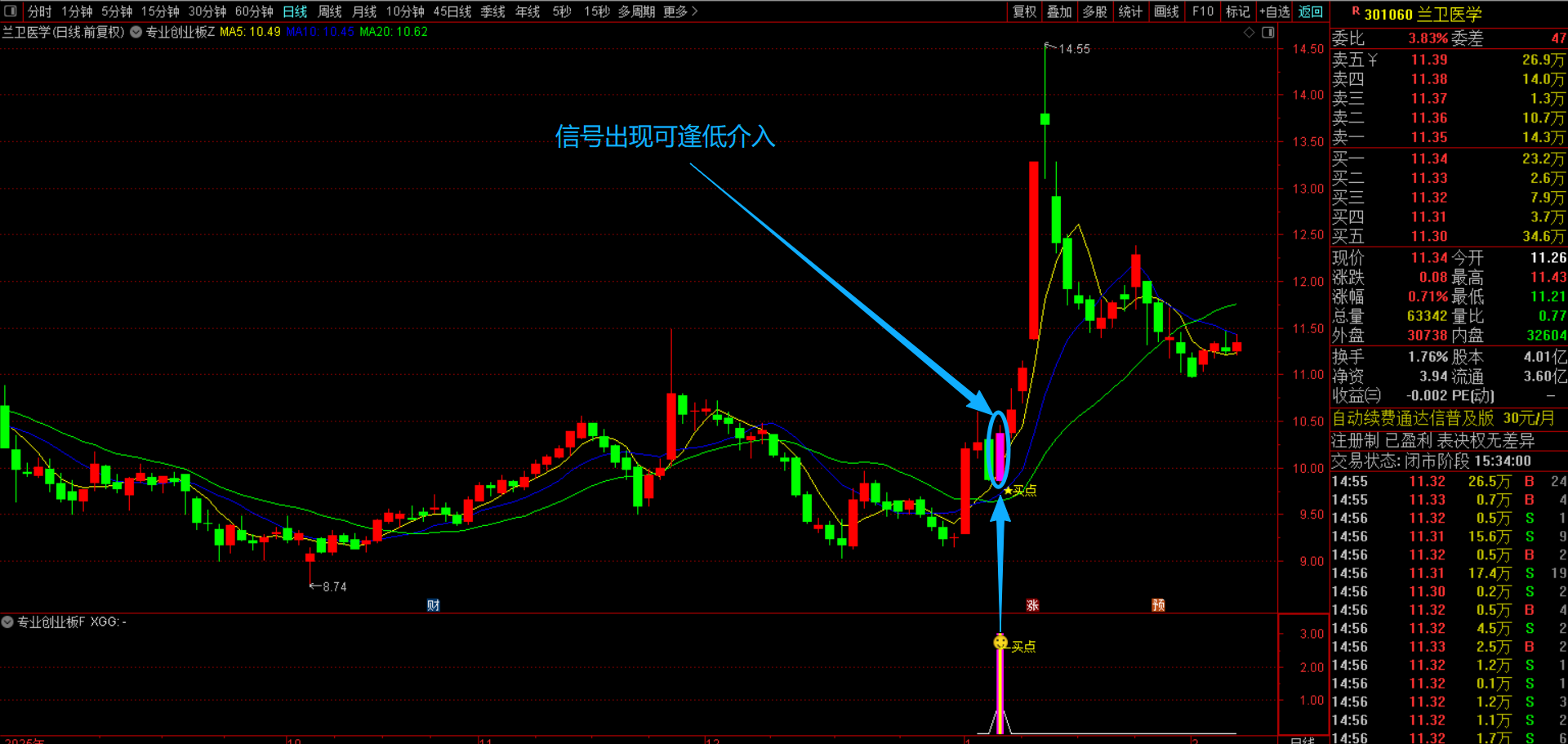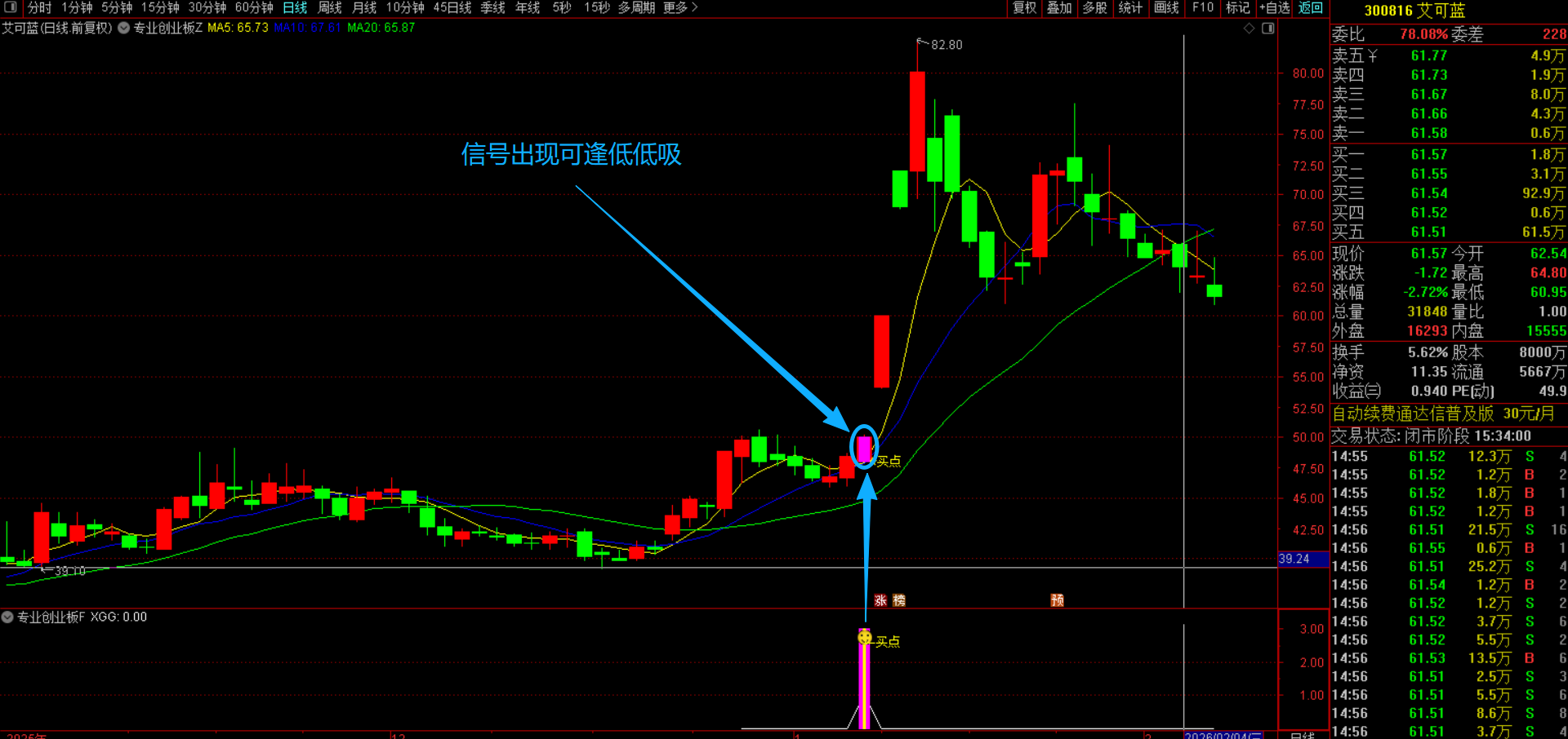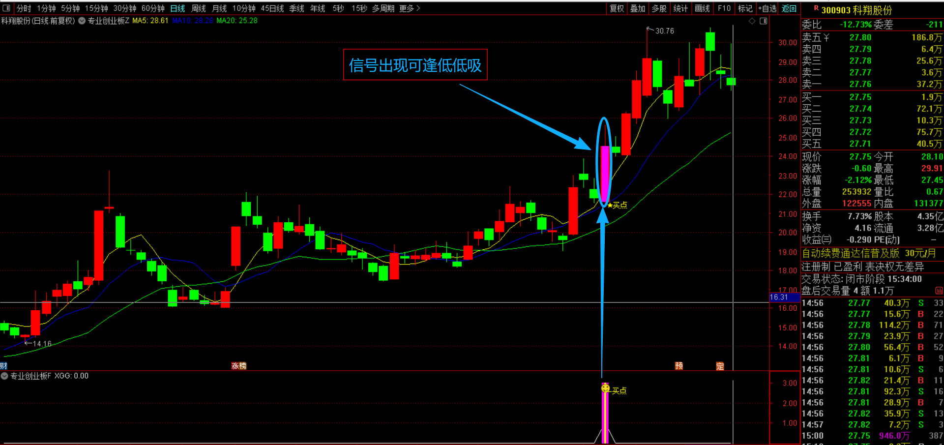 (通达信【专业创业板】主副图选股指标 短线交易设计,筛选昨日强势放量,均线多头排列 源码无未来函数手机电脑通用)
