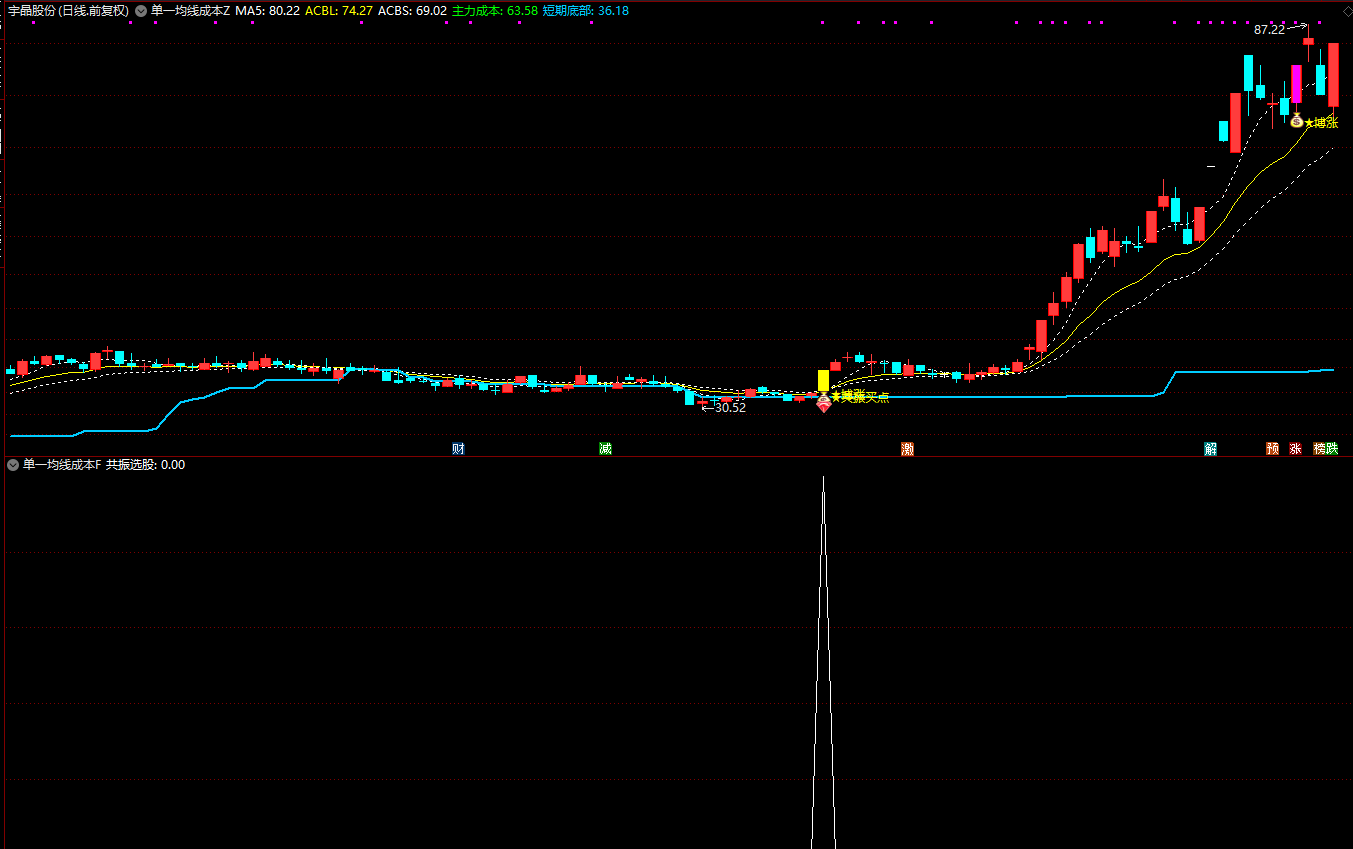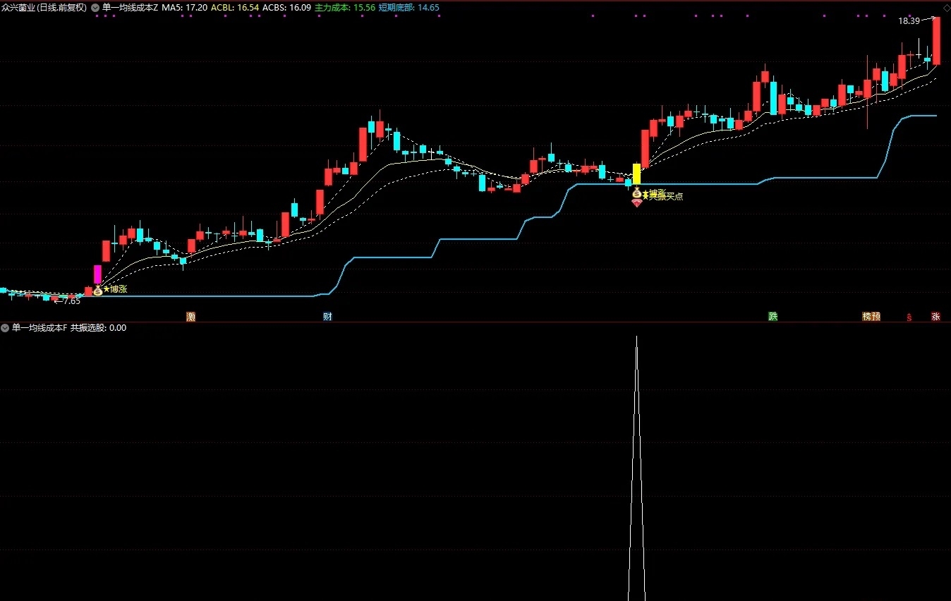 (通达信〖单一均线算成本〗主副图/选股 博涨强势信号+均线突破趋势信号 源码)