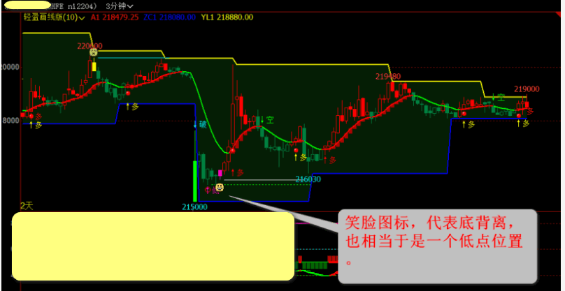 三:除了上边写的“黄线和蓝线自动画线”和“突字与破字”,用到未来函数,其它的地方如:高字、低字、笑脸哭脸图标、红K线绿K线等,都没有未来函数,信号有无以本周期收盘价为准。