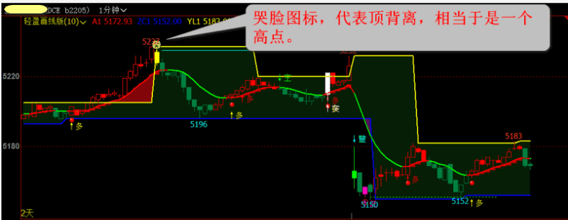 (轻盈期货指标:画线版,多空、高点低点、背离点、撑压线都有了。)