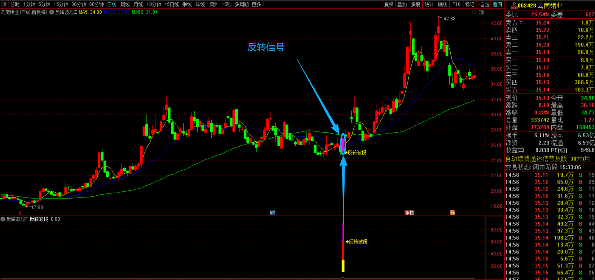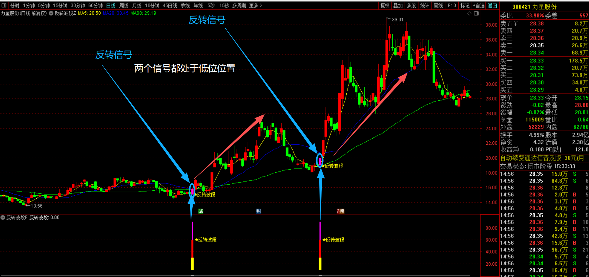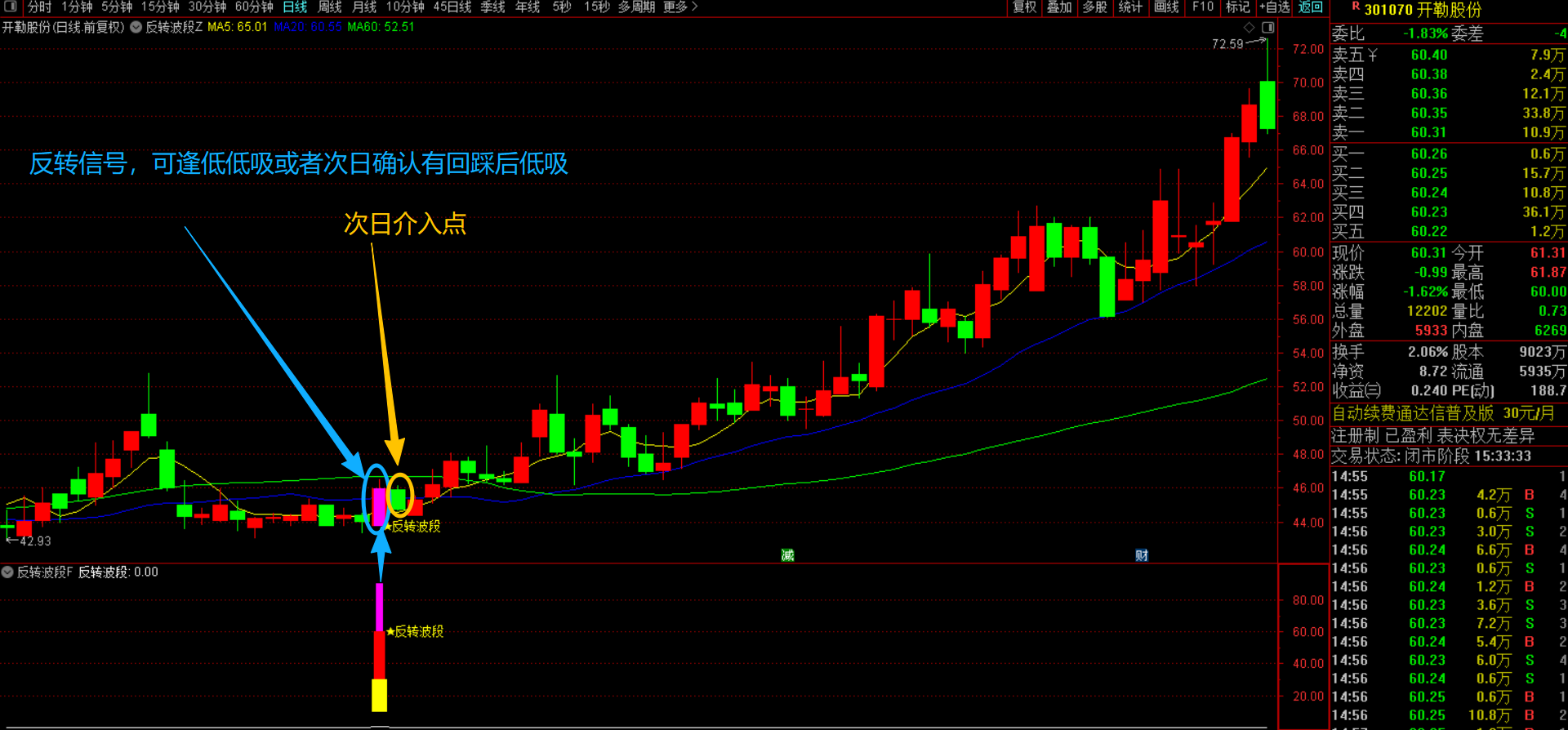 通达信【反转波段】主副图指标 专为捕捉小盘超跌股的强势反转机会设计 无未来函数手机电脑通用