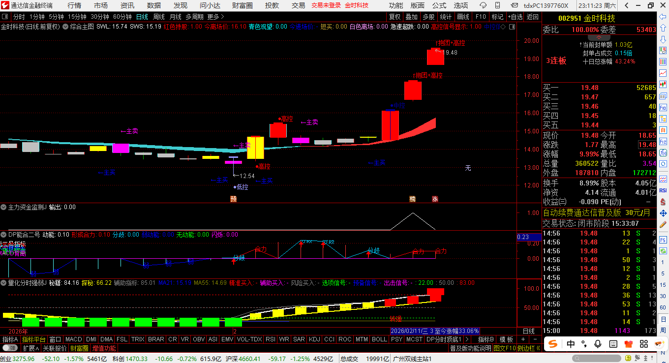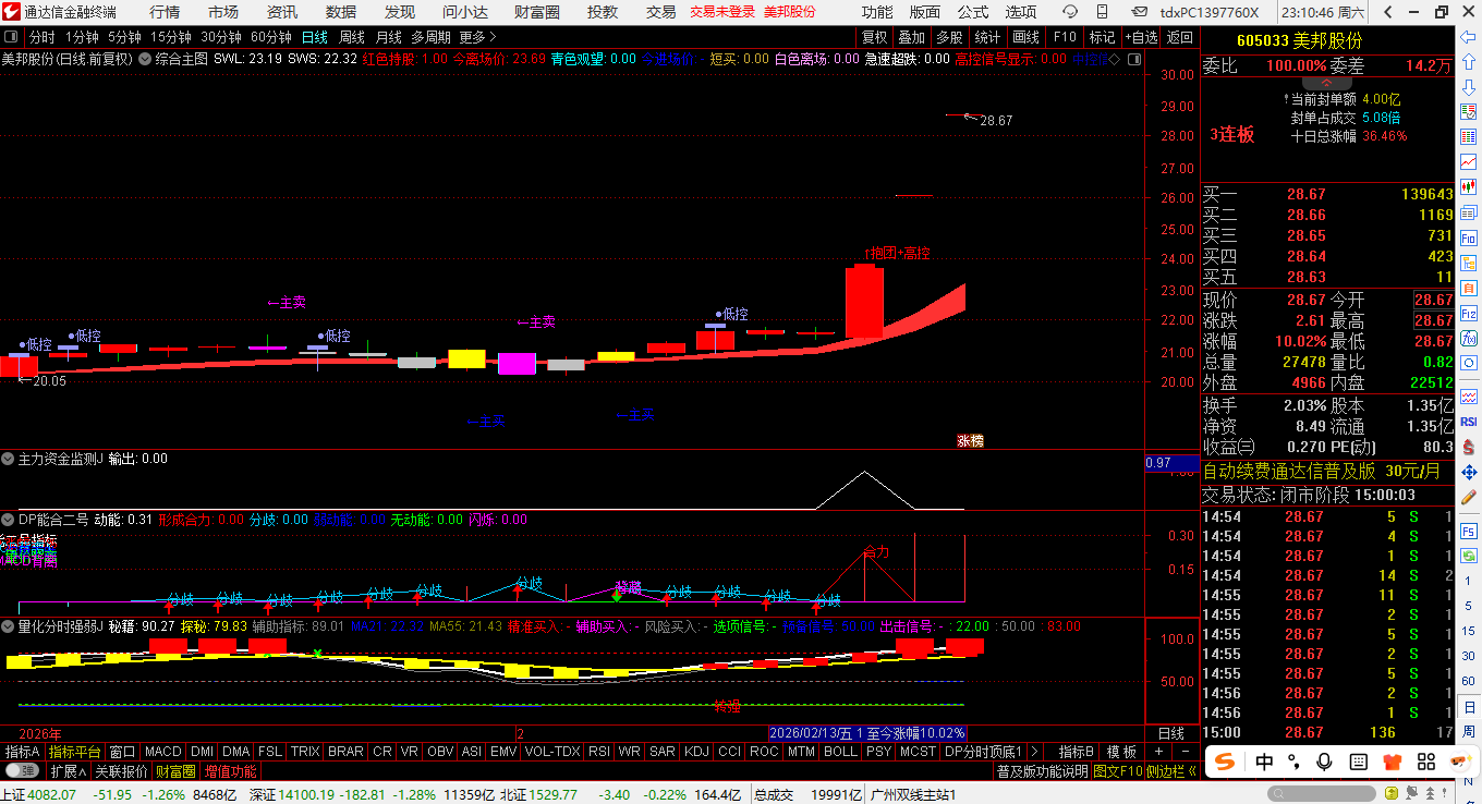 注:选股指标,主图指标含CAPITAL等未来函数,但不影响使用效果,放心使用。信号数量少而精(如2026年2月13日仅触发2只,均有好的买入机会)