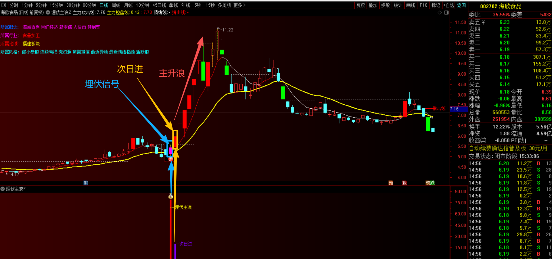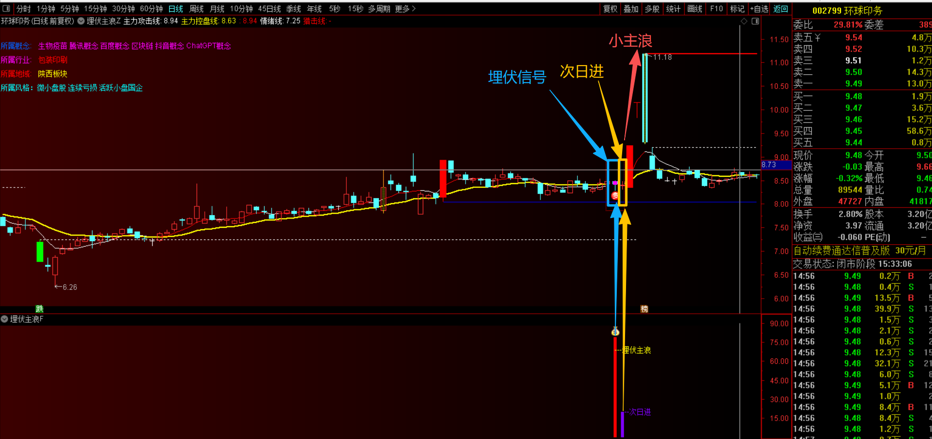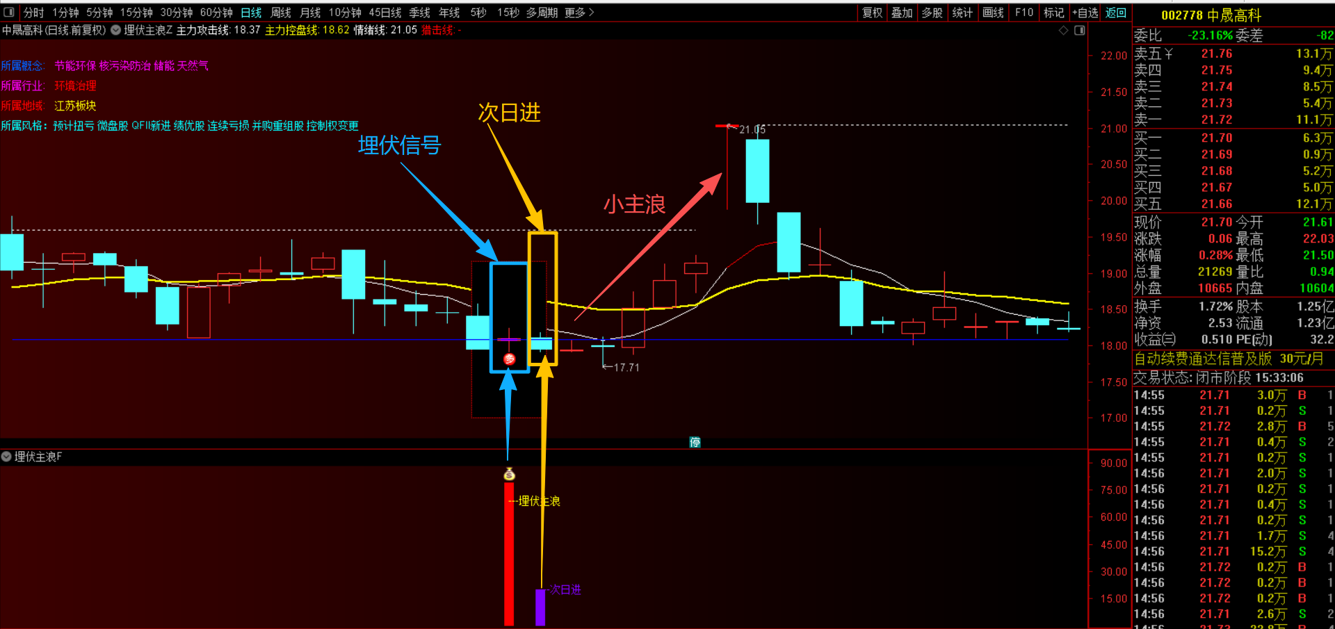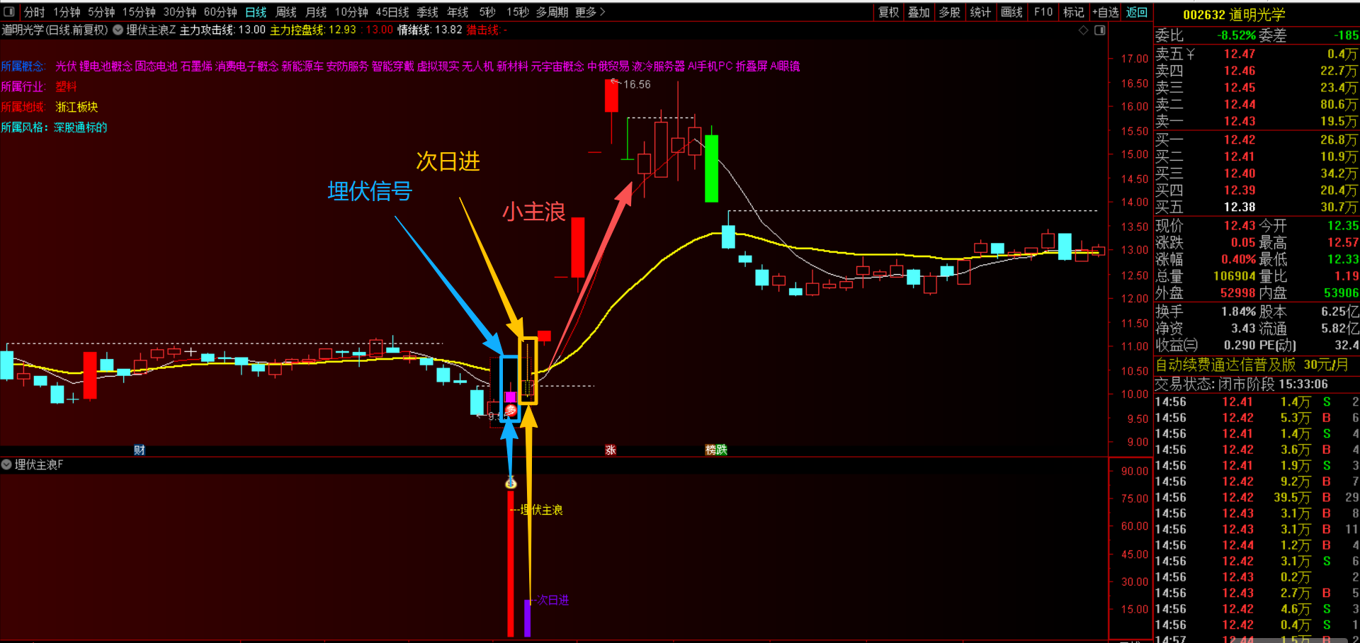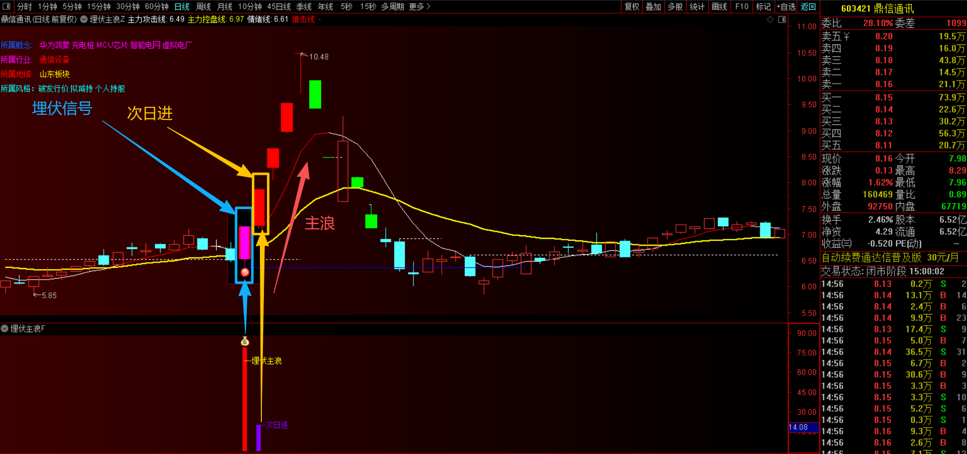 对应副图:盘后出现埋伏主浪字眼,次日可次日可逢低介入。