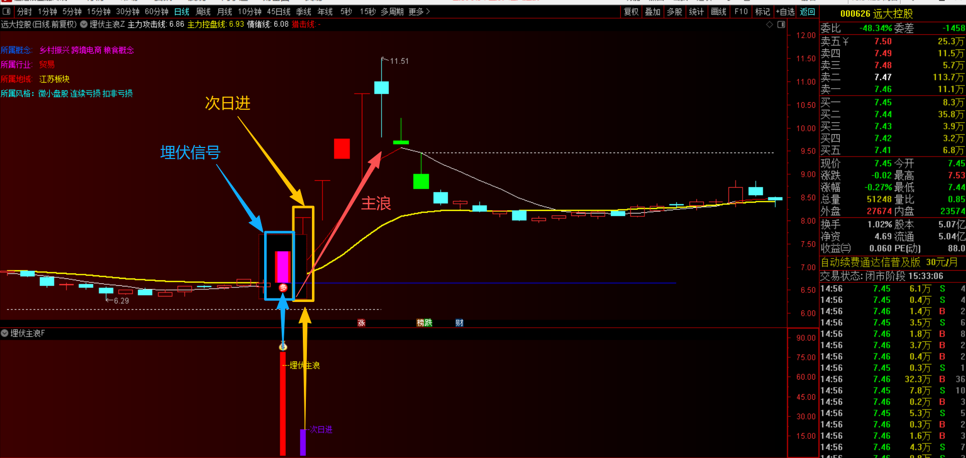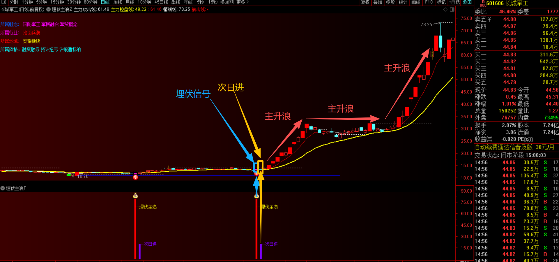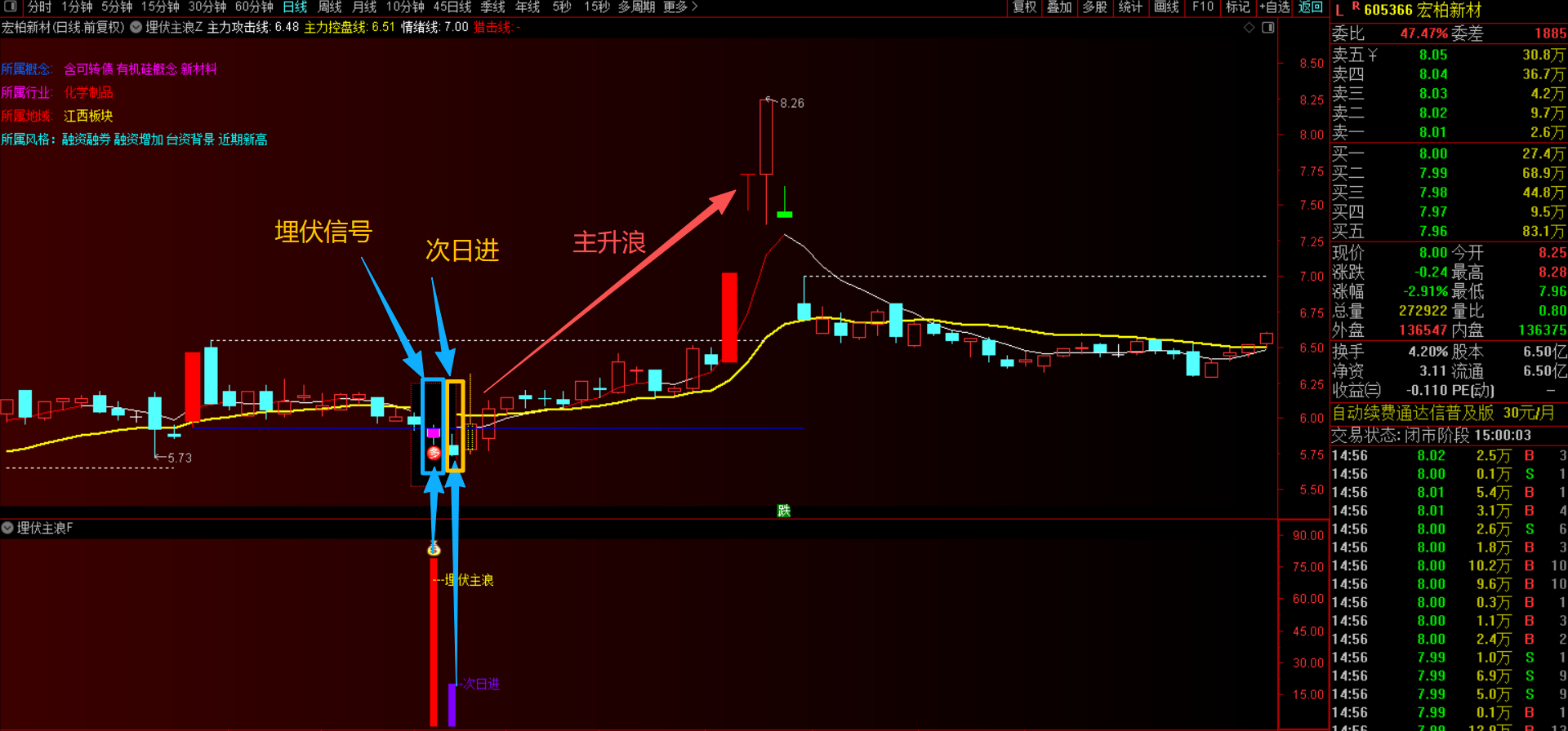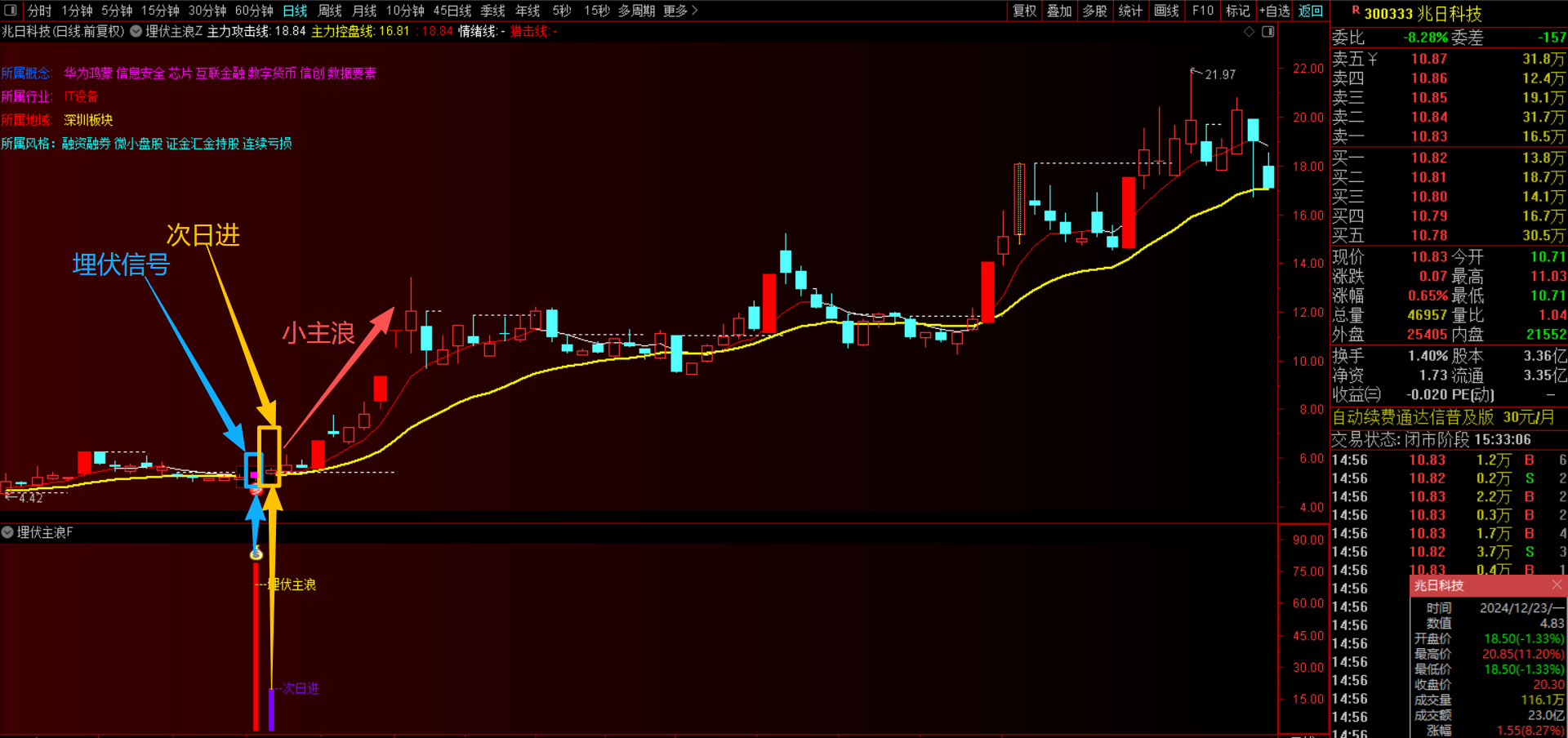 对应副图:盘后出现埋伏主浪字眼,次日可次日可逢低介入。