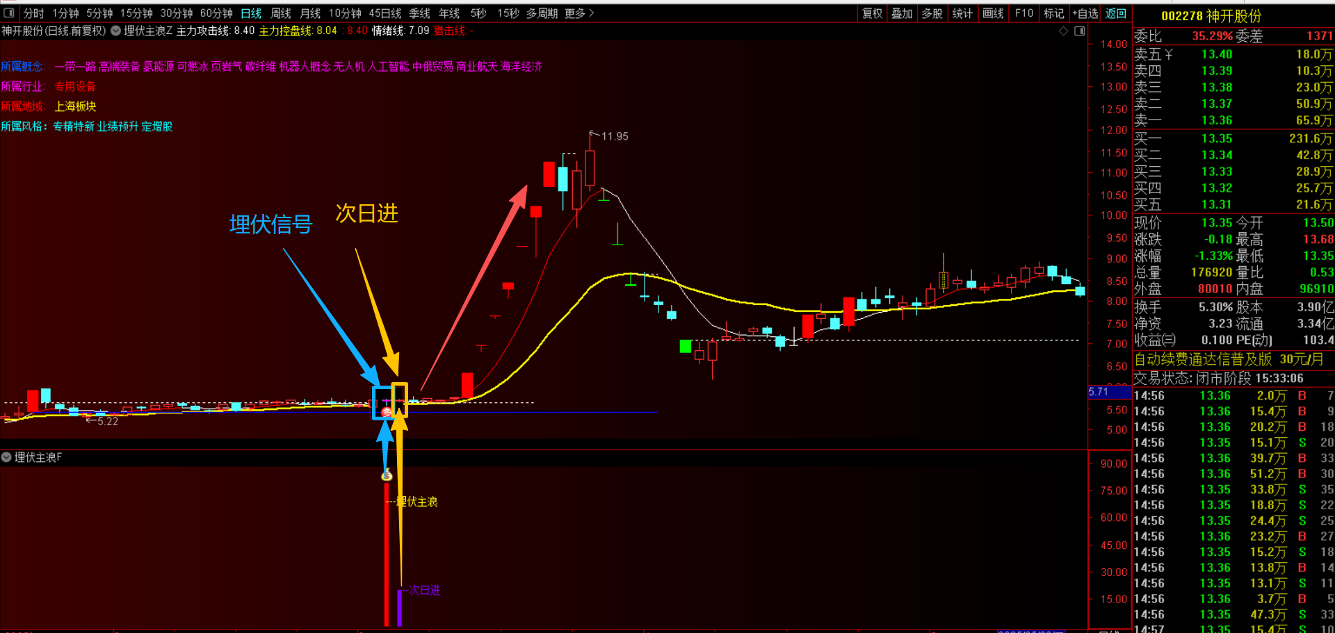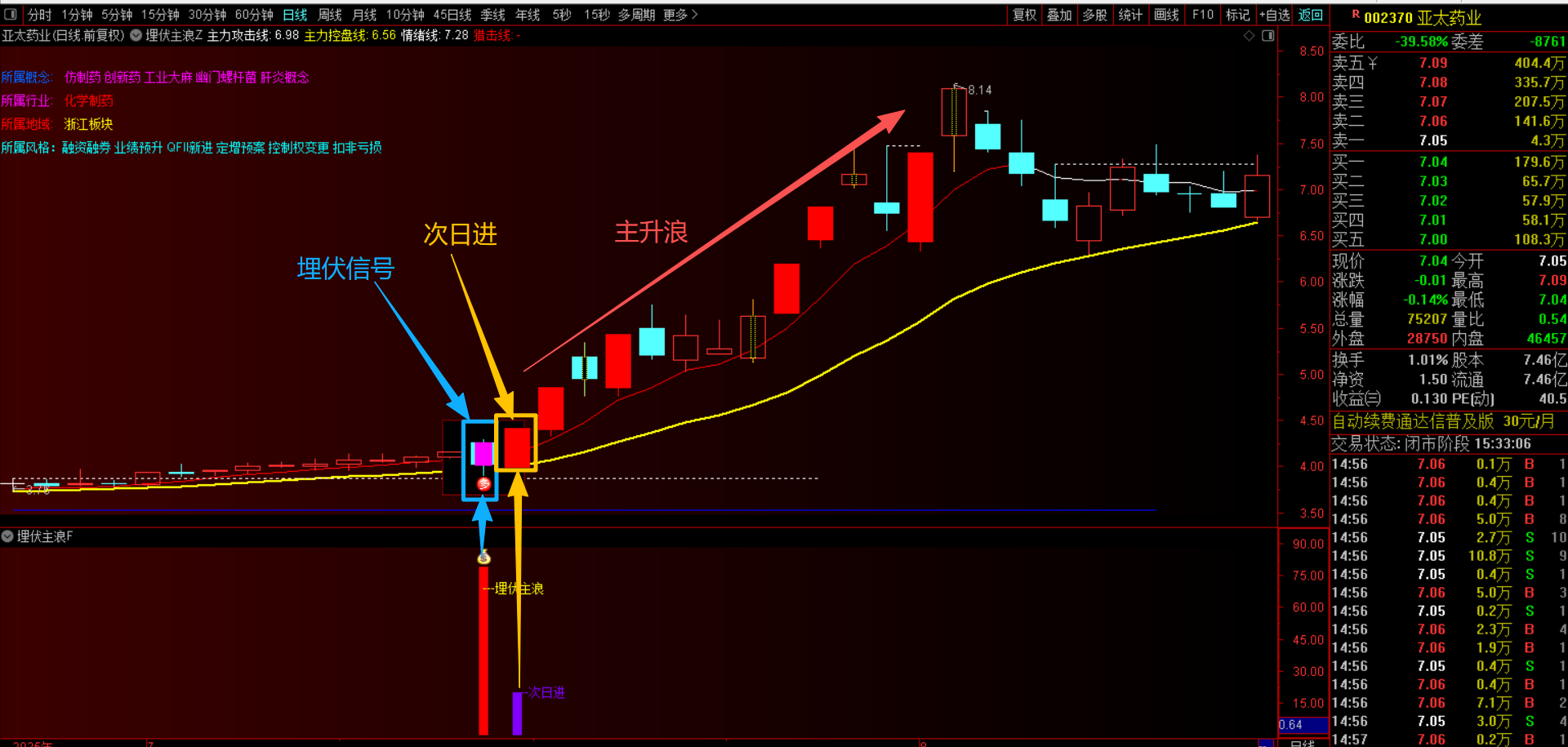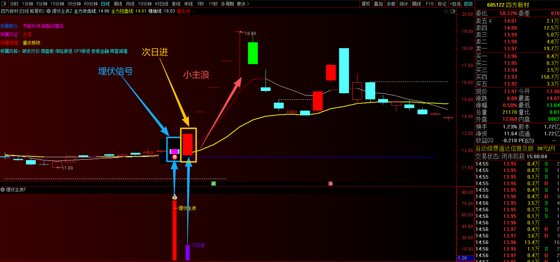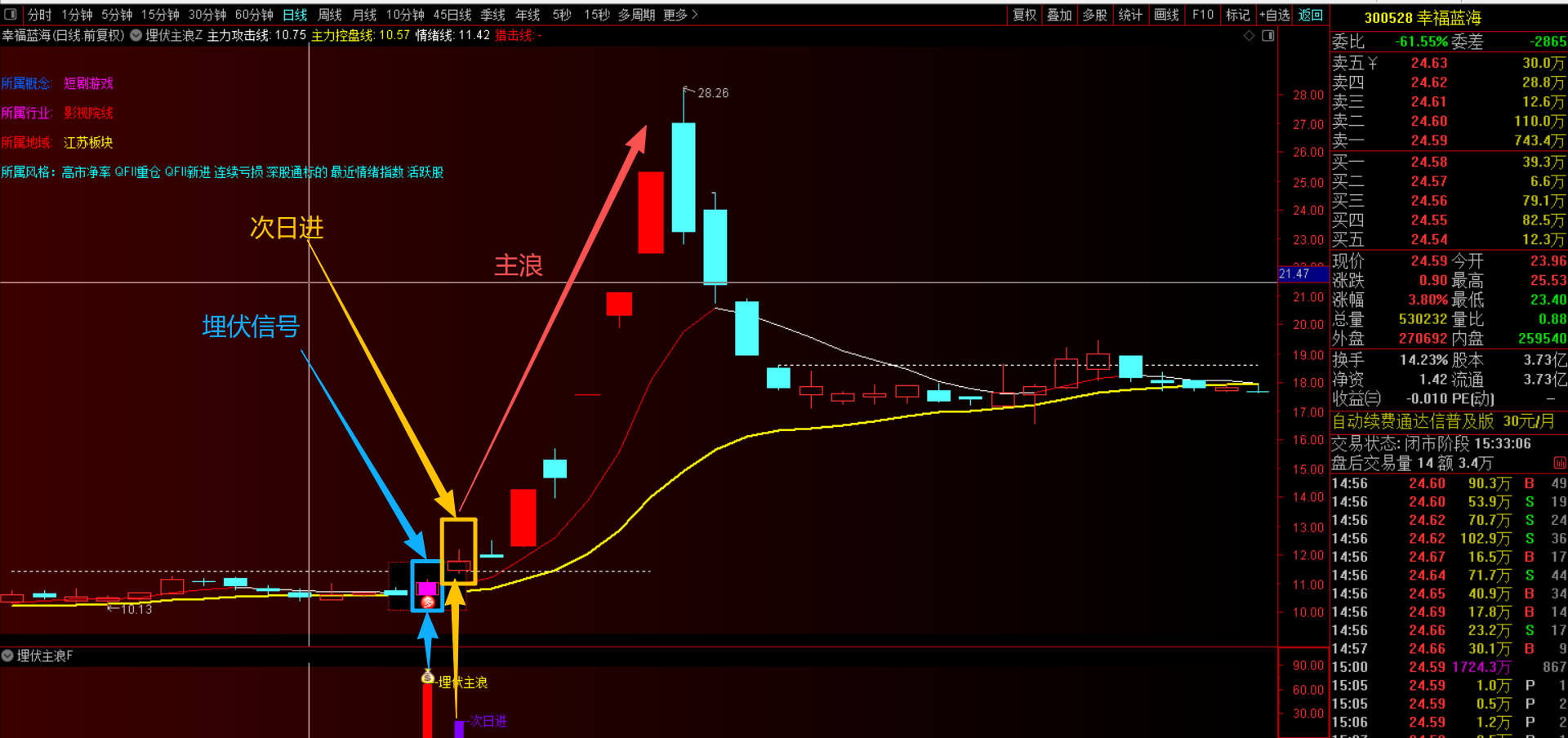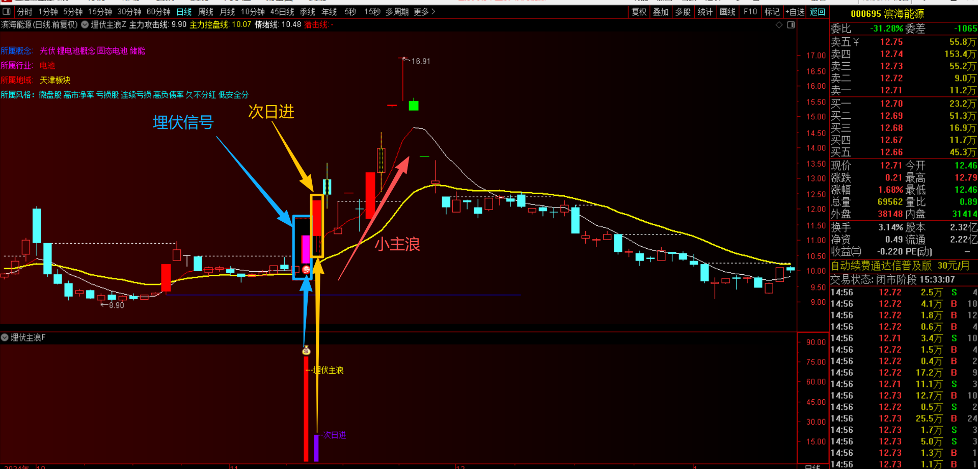 对应副图:盘后出现埋伏主浪字眼,次日可次日可逢低介入。