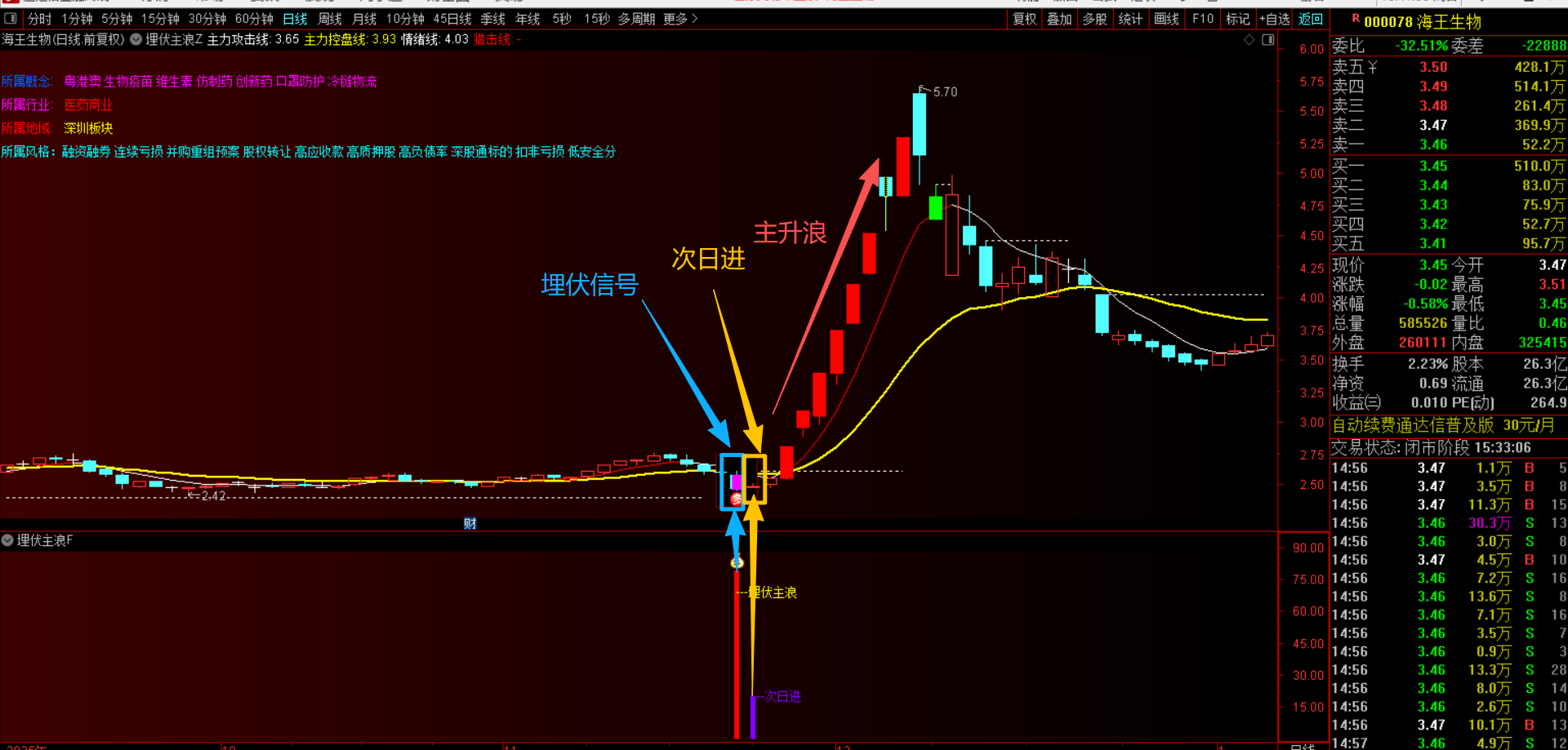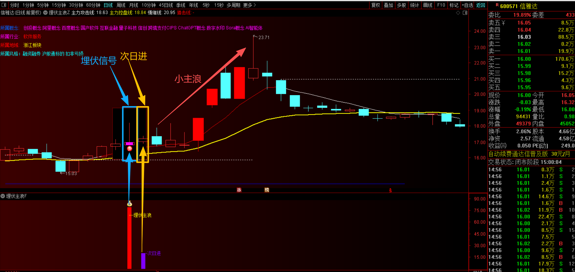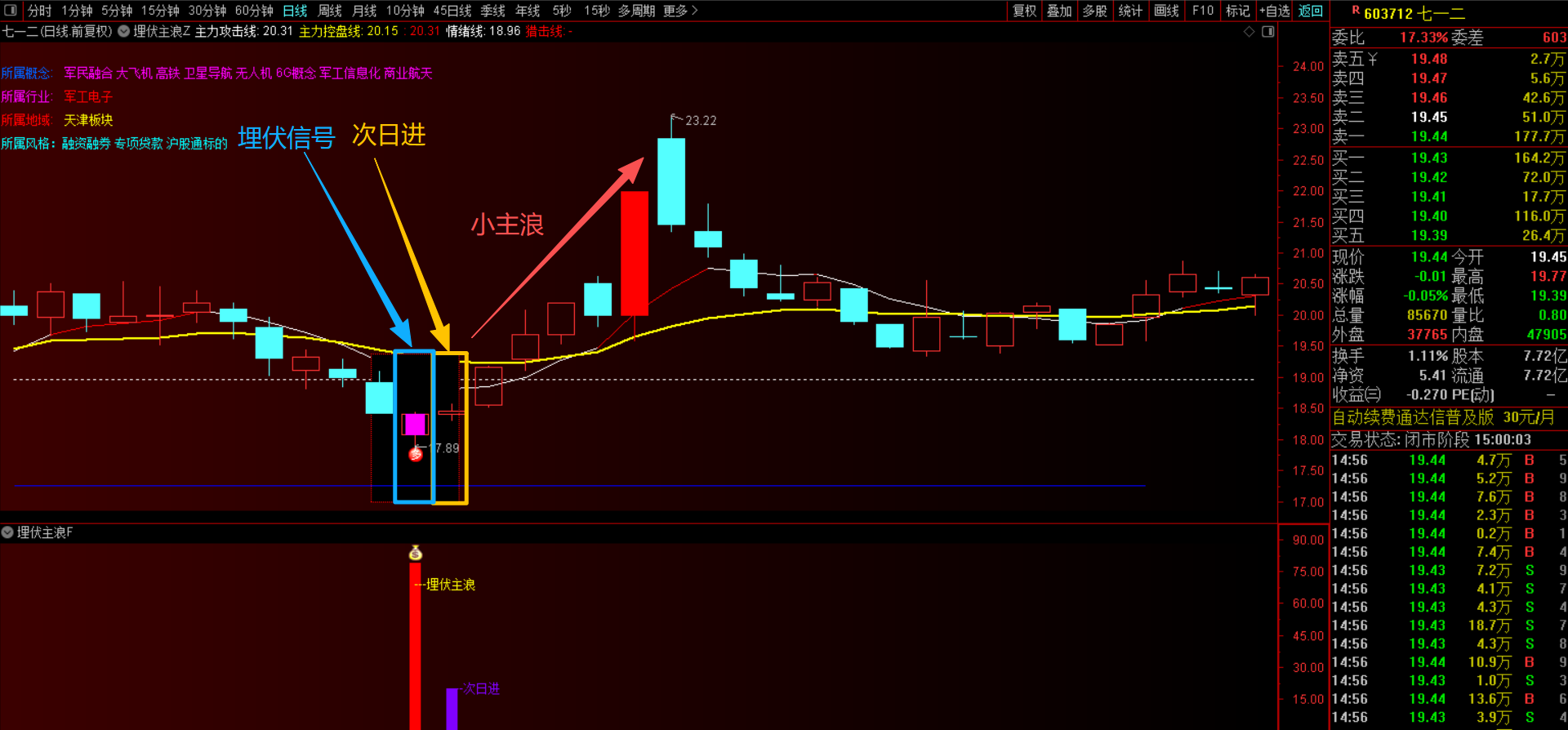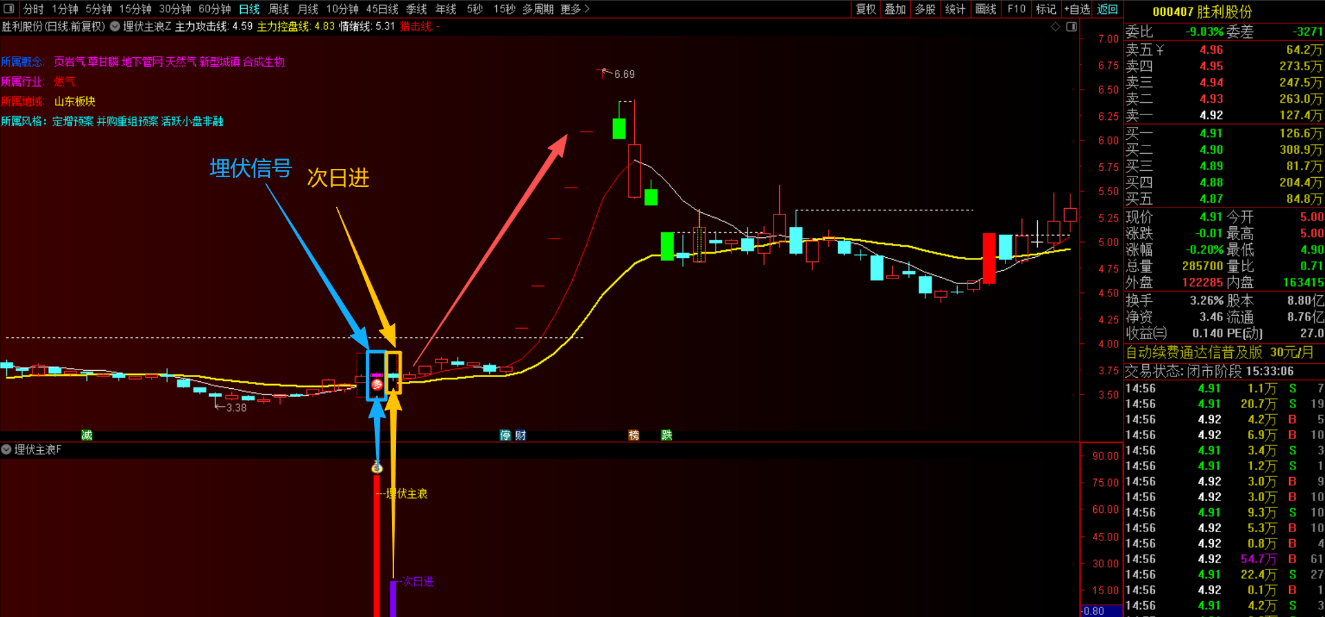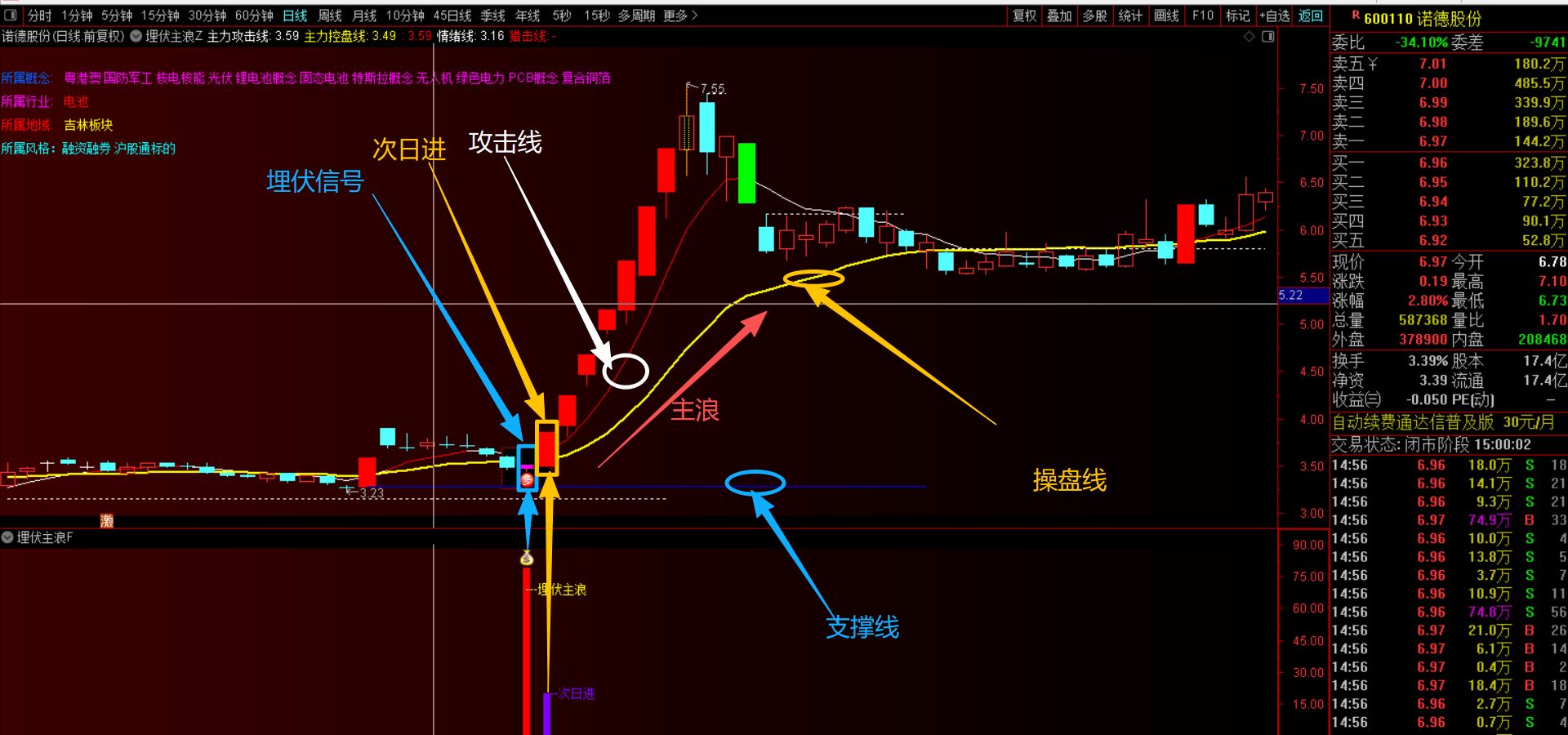 对应副图:盘后出现埋伏主浪字眼,次日可次日可逢低介入。