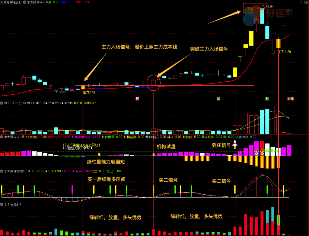 1、承袭【主力成本线+升级跟庄王】精髓,升级而来,保留标志性火箭选股信号,强化选股能力。