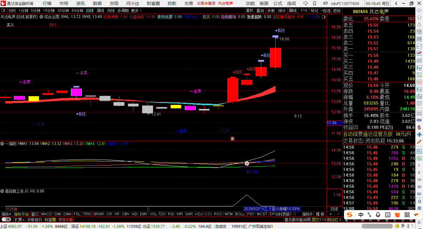 【高控就上车选股策略】技术指标可以在通达信手机端和电脑端使用,电脑端使用建议采用自动监测方式,下面为手机端导入方式: