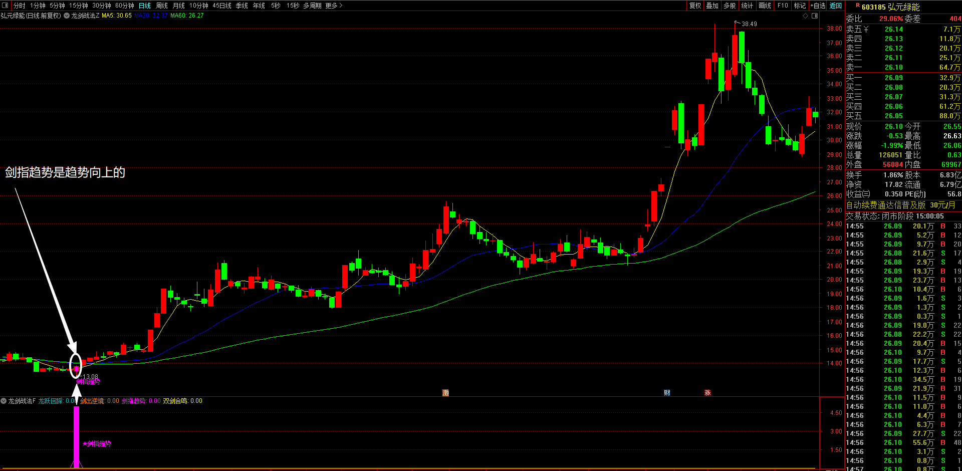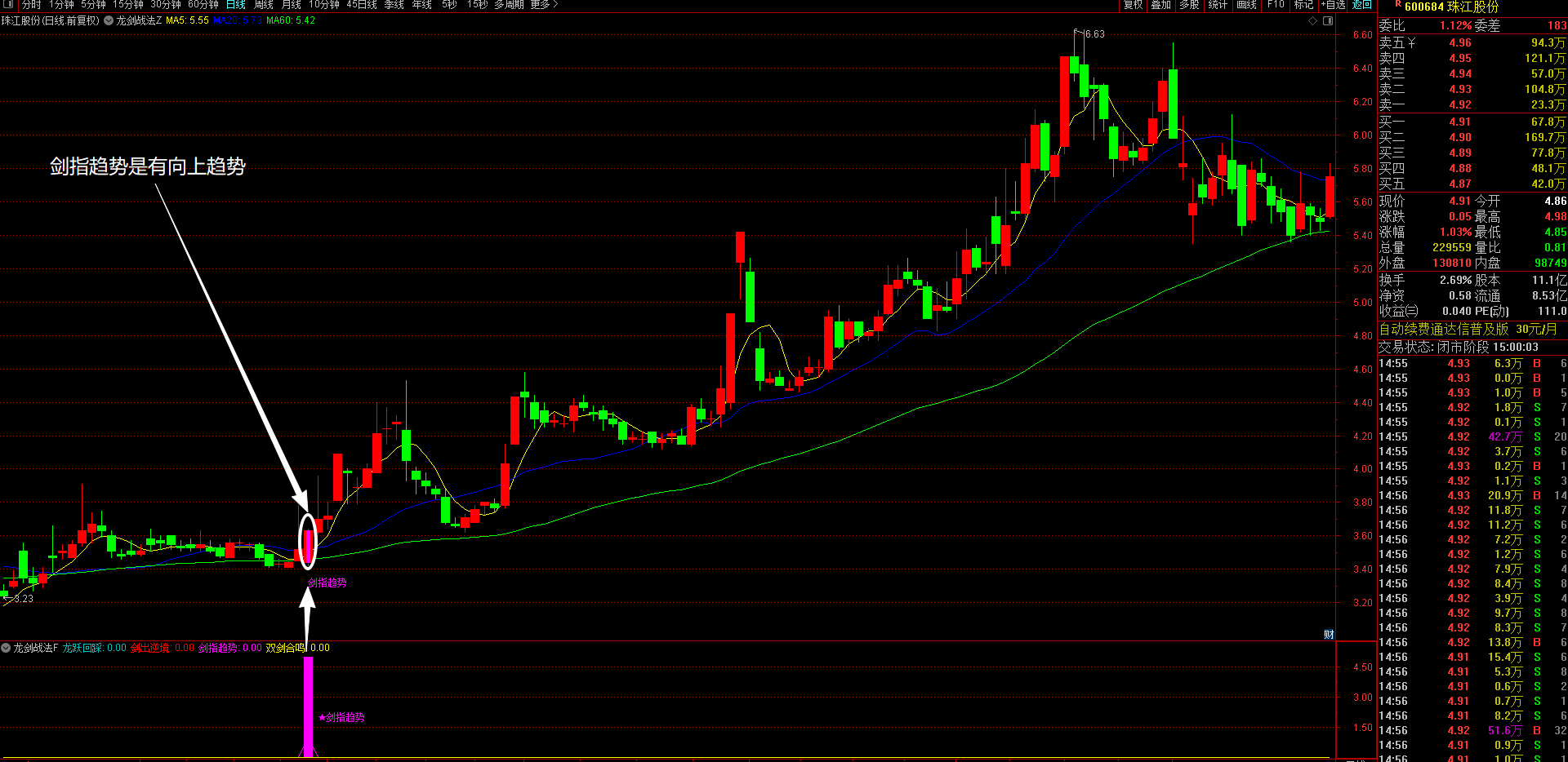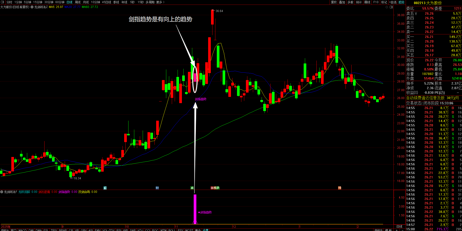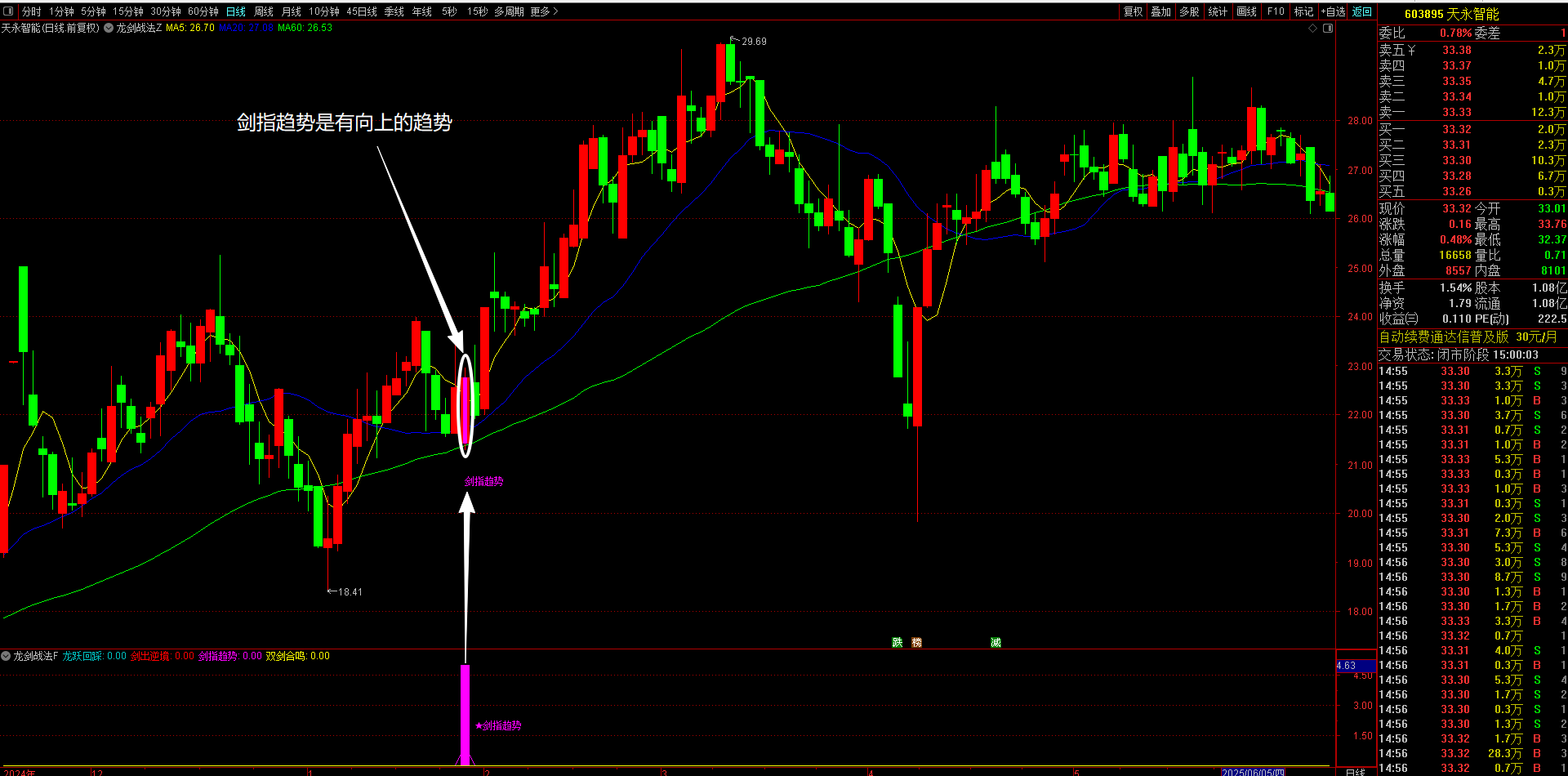 3、剑指趋势策略(洋红色显示)---趋势主升