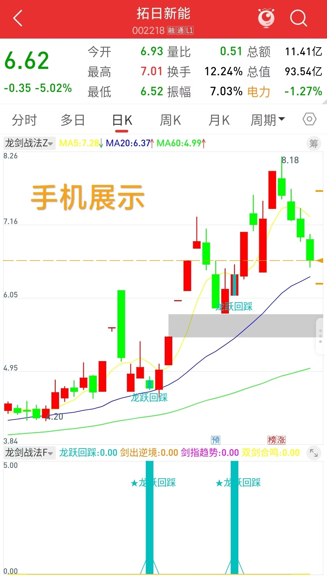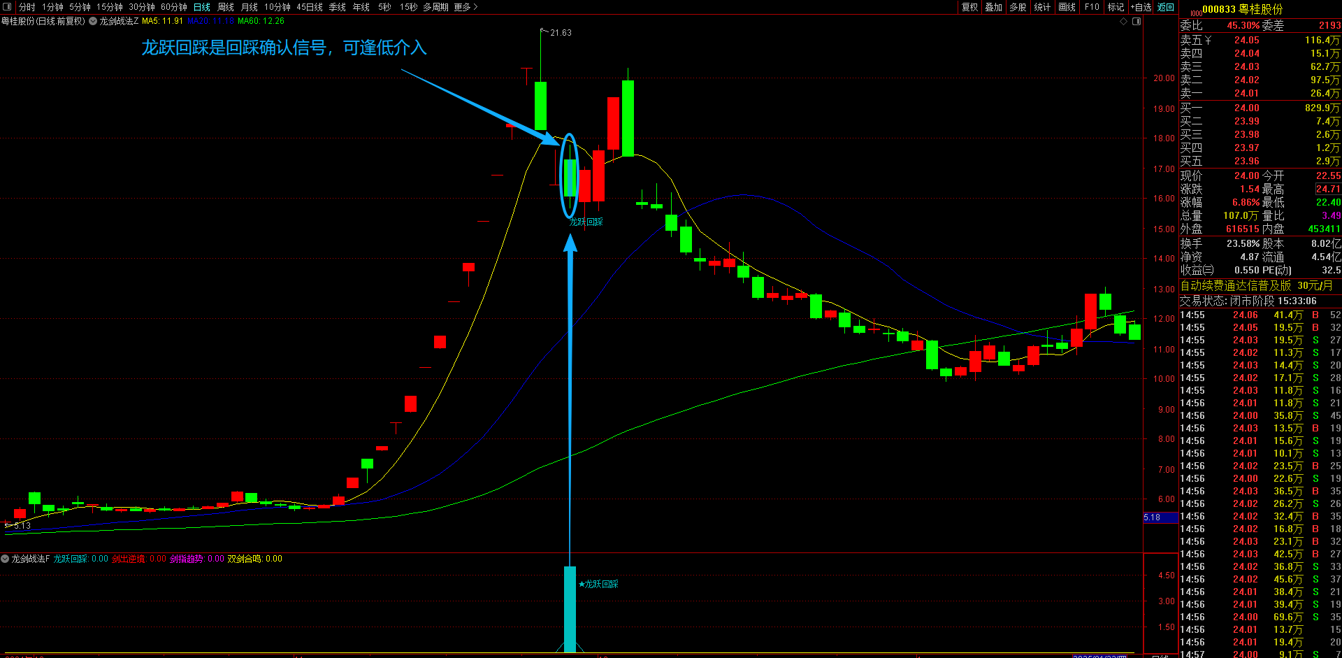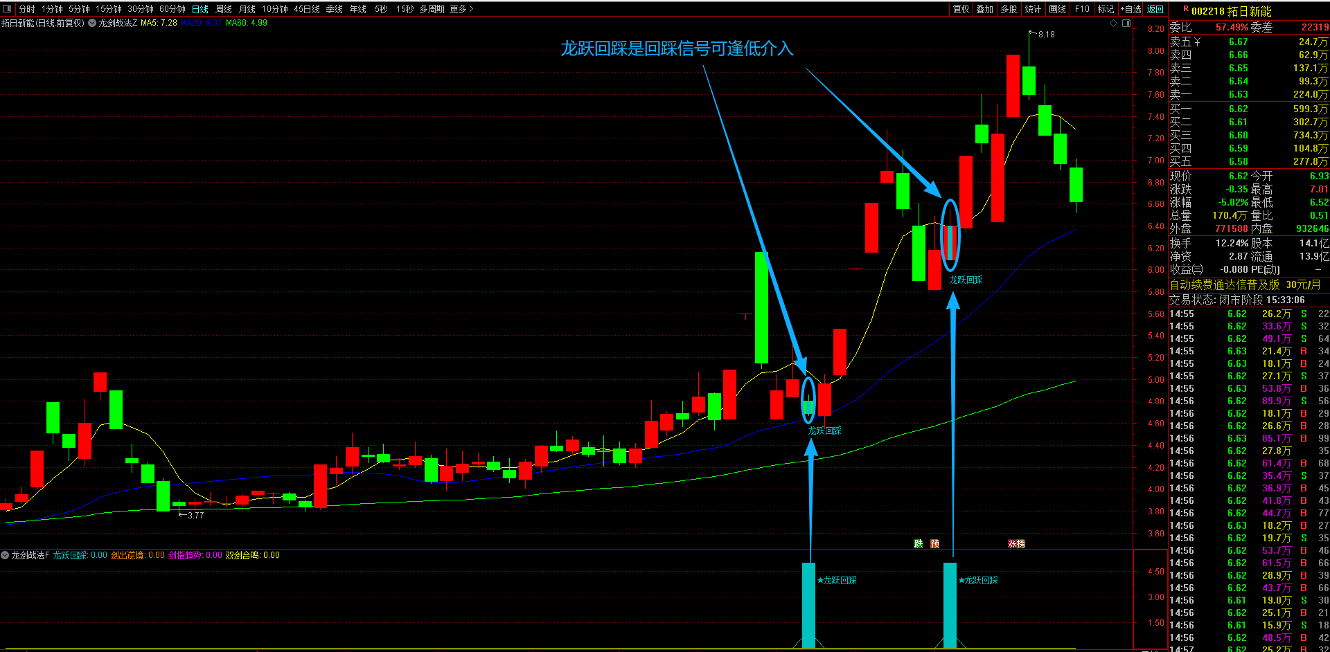 1、龙跃回踩策略(浅蓝显示)---回踩低吸