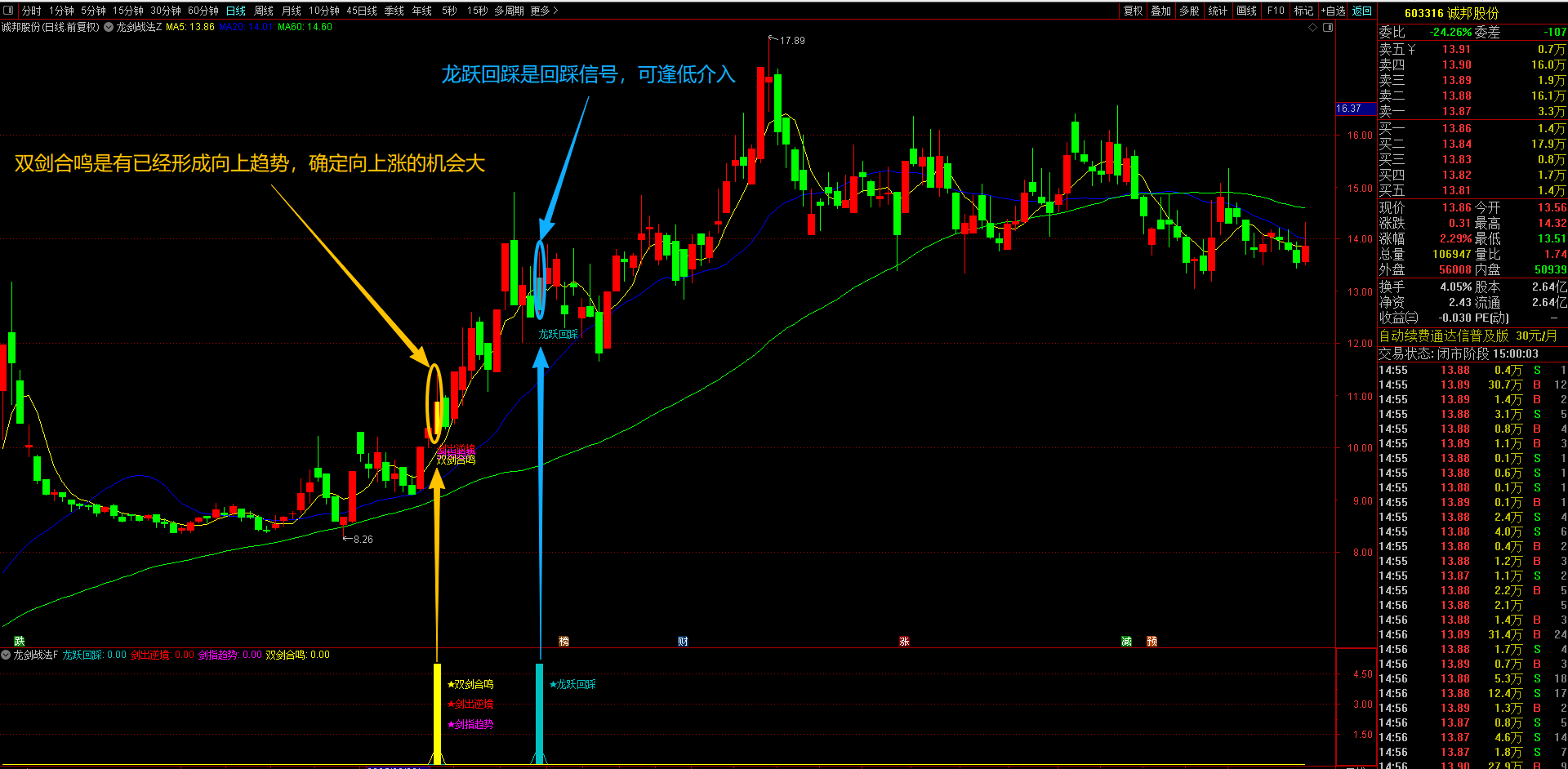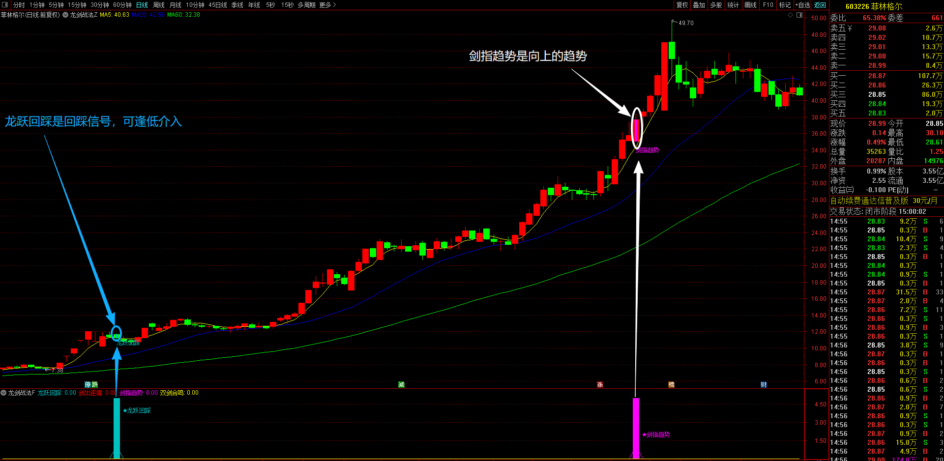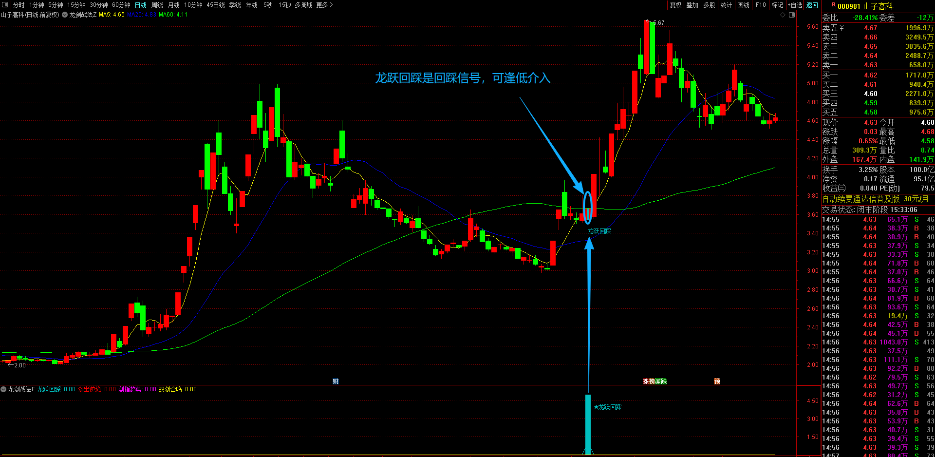1、龙跃回踩策略(浅蓝显示)---回踩低吸