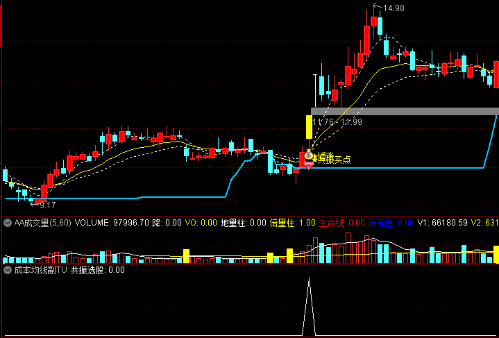 (通达信 成本均线 主图 副图 选股 共振起涨信号买点)