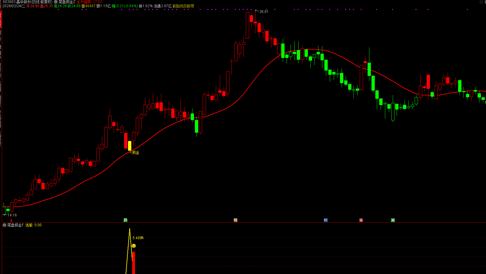 (通达信【尾盘捞金】主副图选股 尾盘选股神器 票少而精 大道至简)