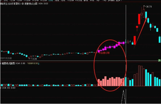这种模式是堆量出现的时候,股价没有涨多少,属于明显的打压建仓的模式,是针对创业板的做盘手法,后面的行情确定性很强,是波段战法,不是短时间启动连板的,需要有耐心持股。