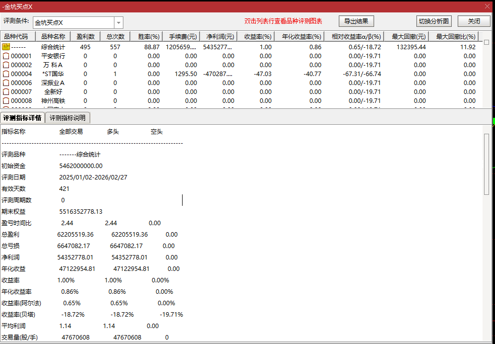 二、总体而言,【金坑买点】指标的核心价值是通过量化手段,精准捕捉回调企稳的金坑买点,将模糊的“回调买点”转化为可落地、可验证的量化信号,