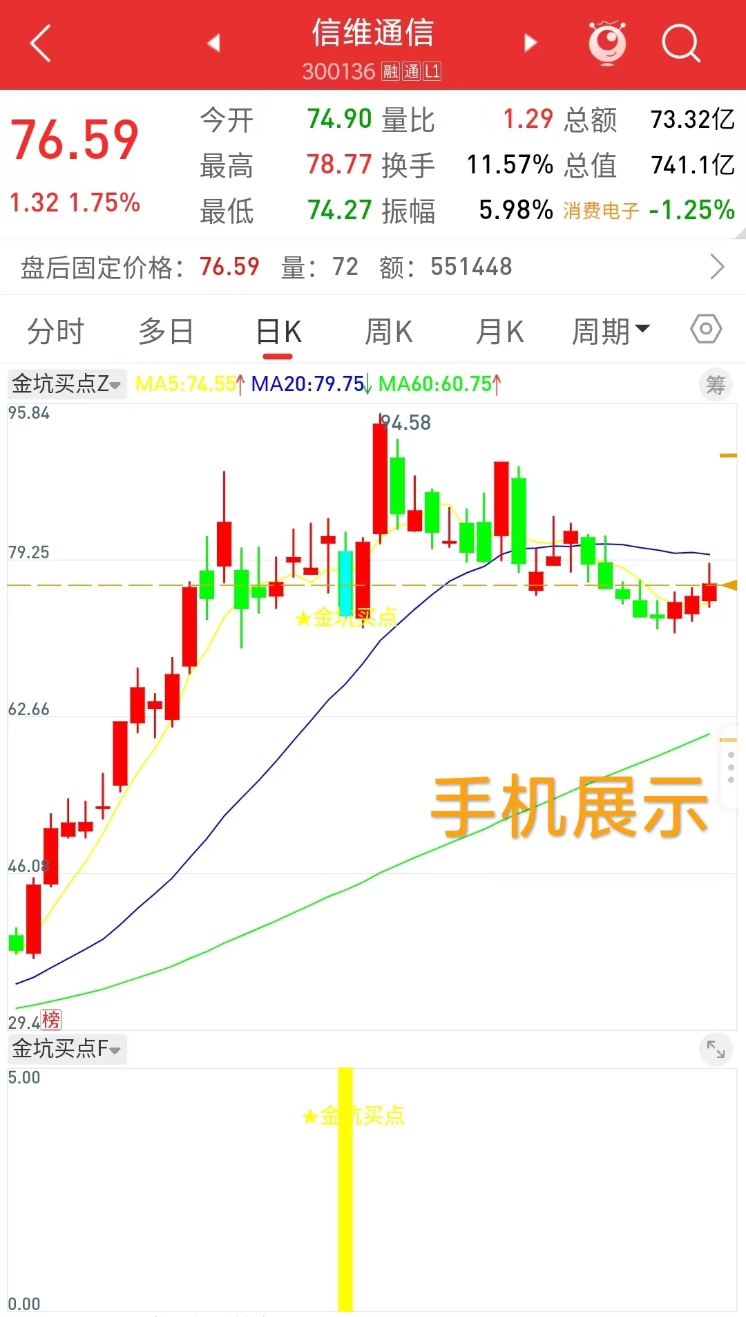 通达信【金坑买点】1主1副图1选股指标 识别 精准捕捉回调企稳的金坑买点T+1高胜率战术 无未来函数手机电脑通达信通用