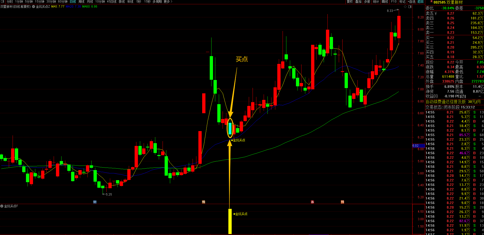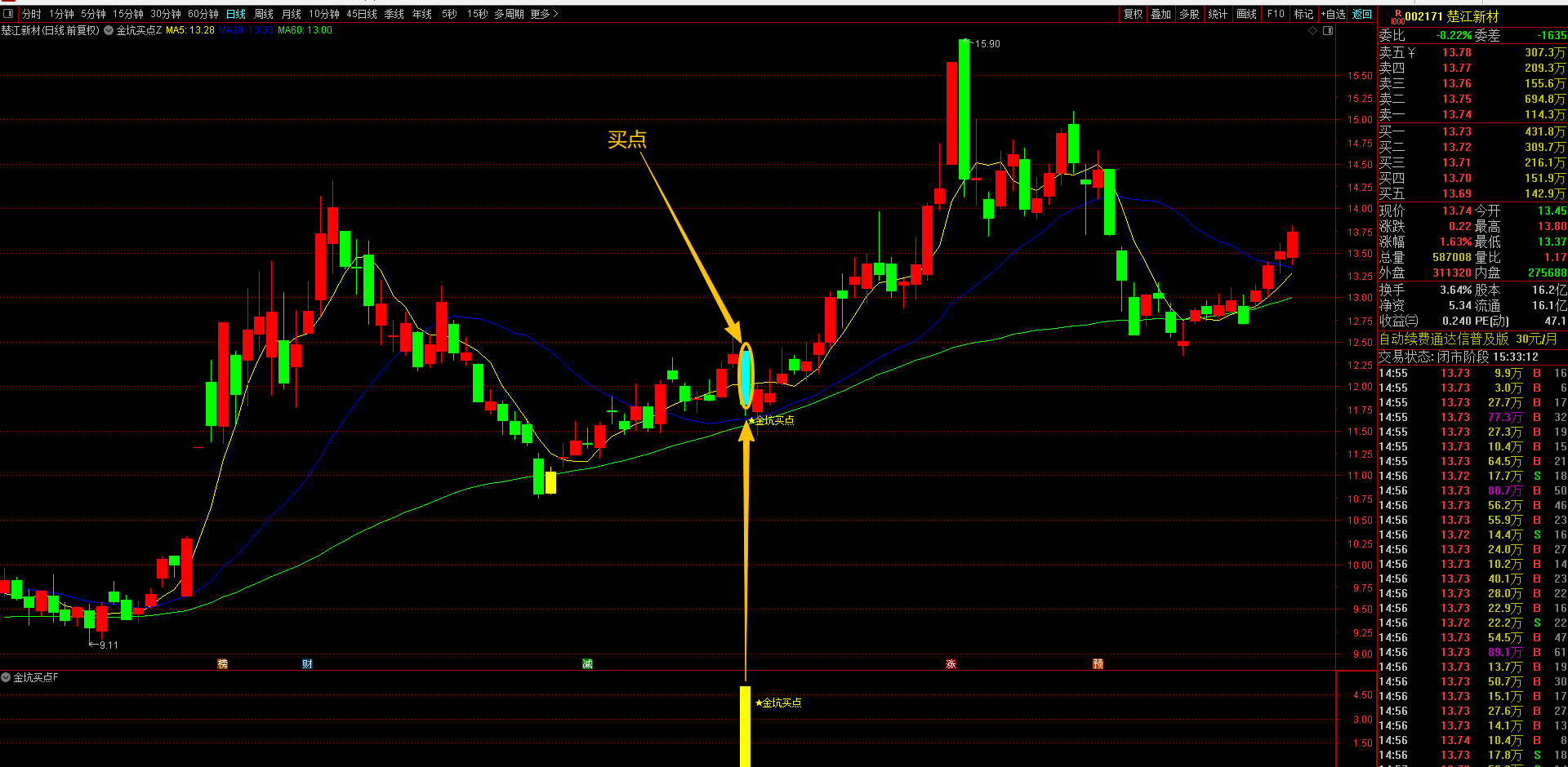 (通达信【金坑买点】1主1副图1选股指标 识别 精准捕捉回调企稳的金坑买点T+1高胜率战术 无未来函数手机电脑通达信通用)