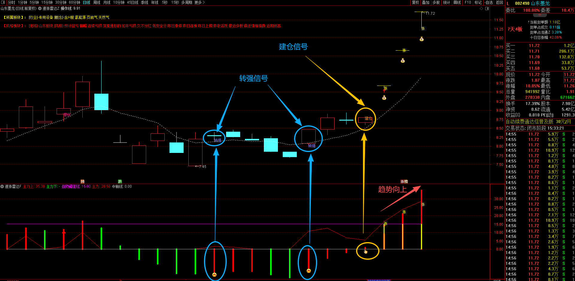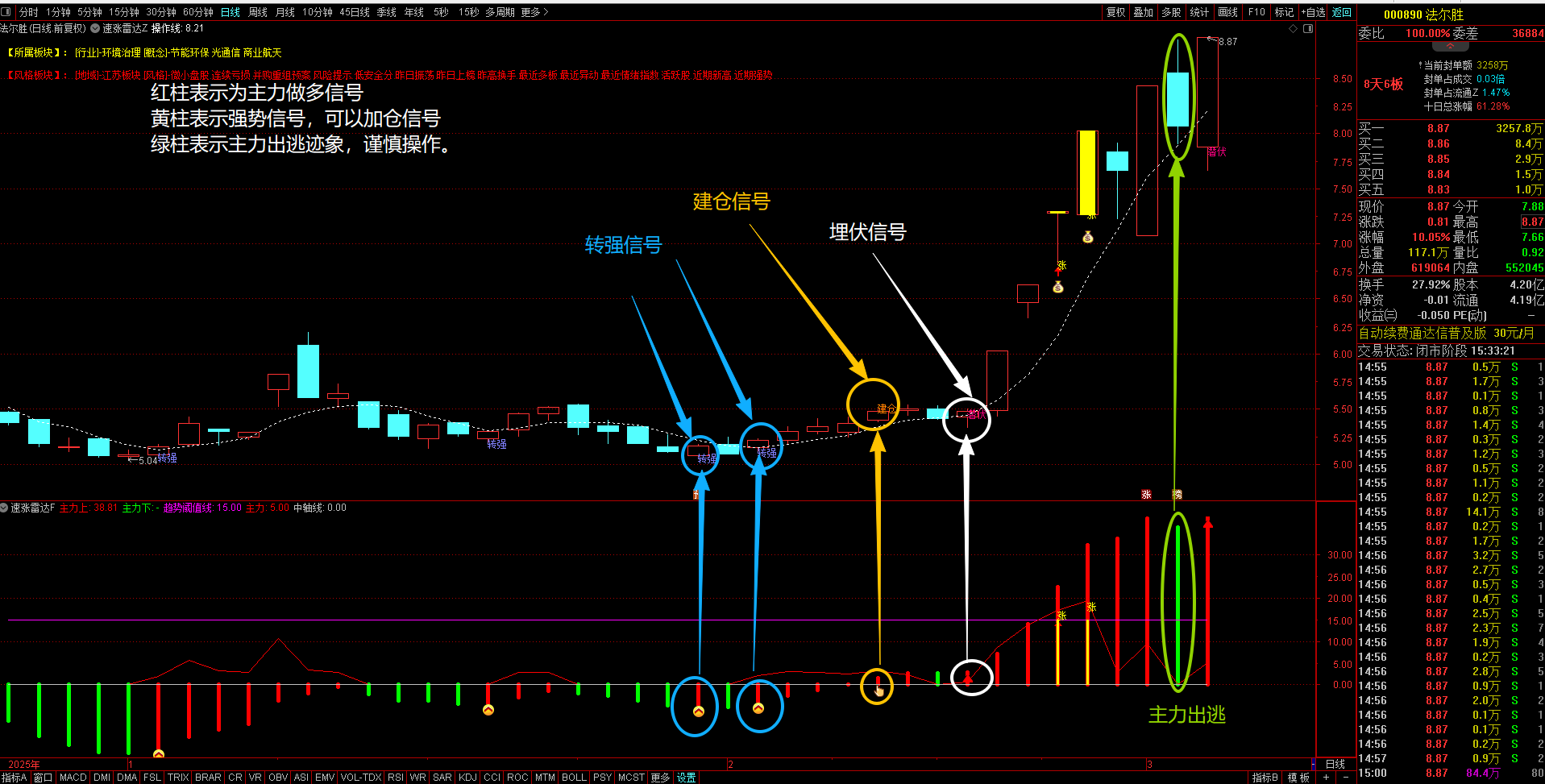 (通达信【速涨雷达】1主1副图7选股指标 专注捕捉个股拉升机会,揭示庄家资金的进出轨迹与控盘状态 无未来手机电脑通用。)