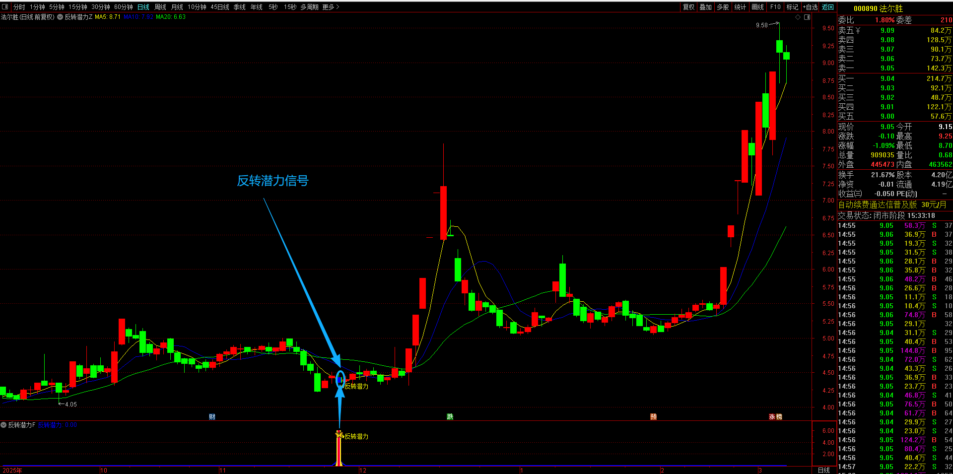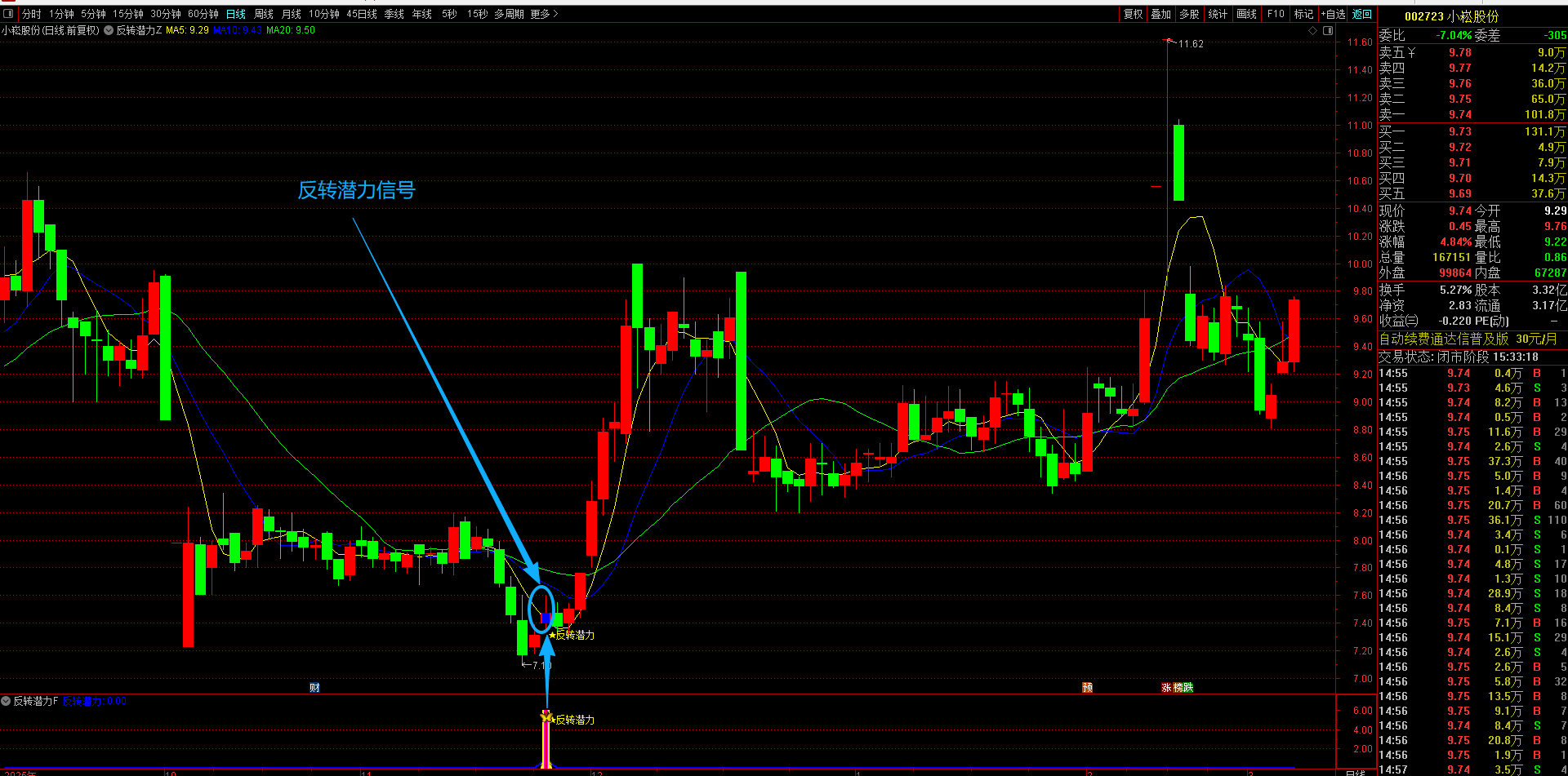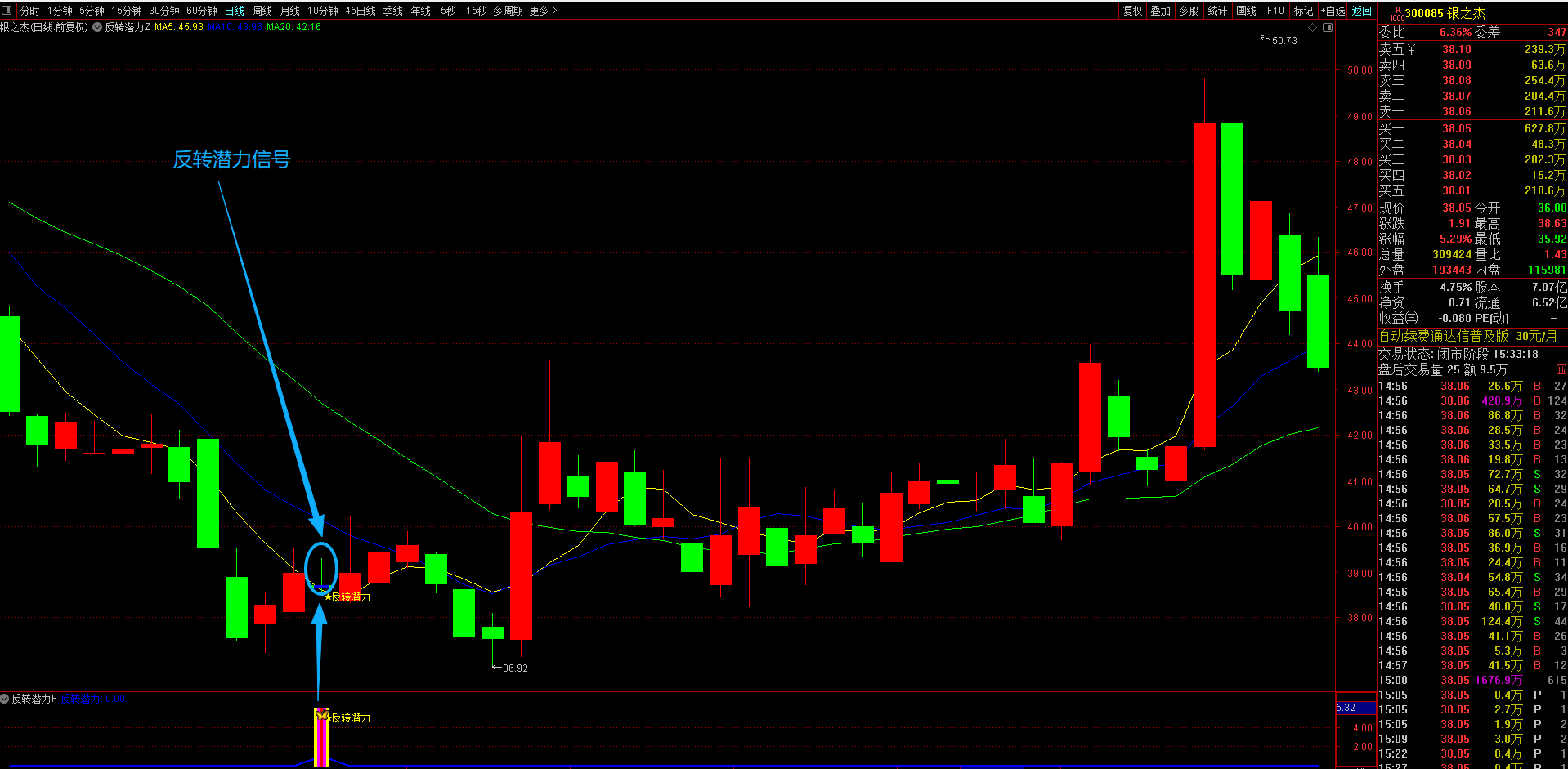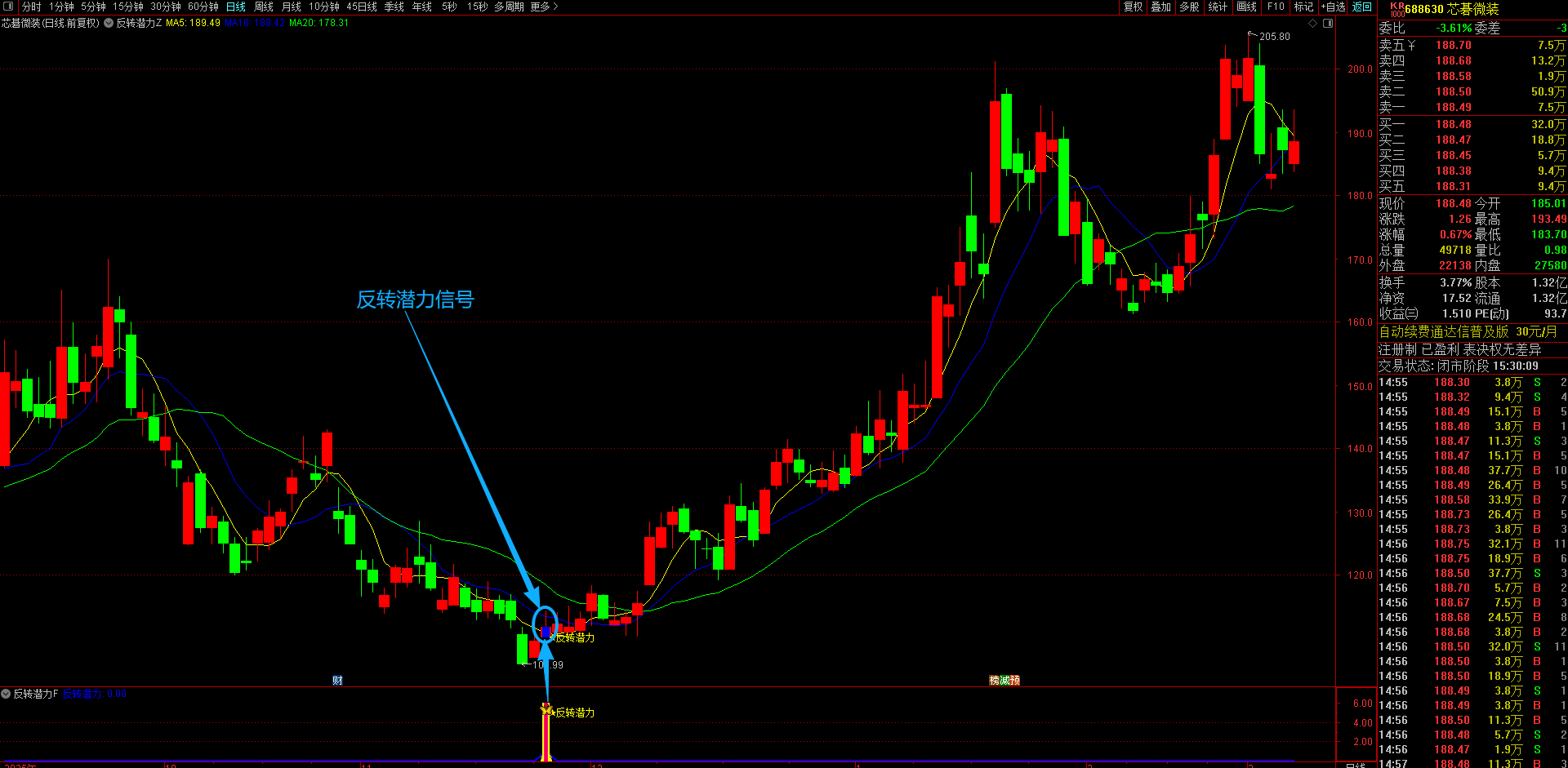 (通达信【反转潜力】主副图选股指标,专买在主力拉升爆发前夜金股提前潜伏不用追高 手机电脑通达信通用。)