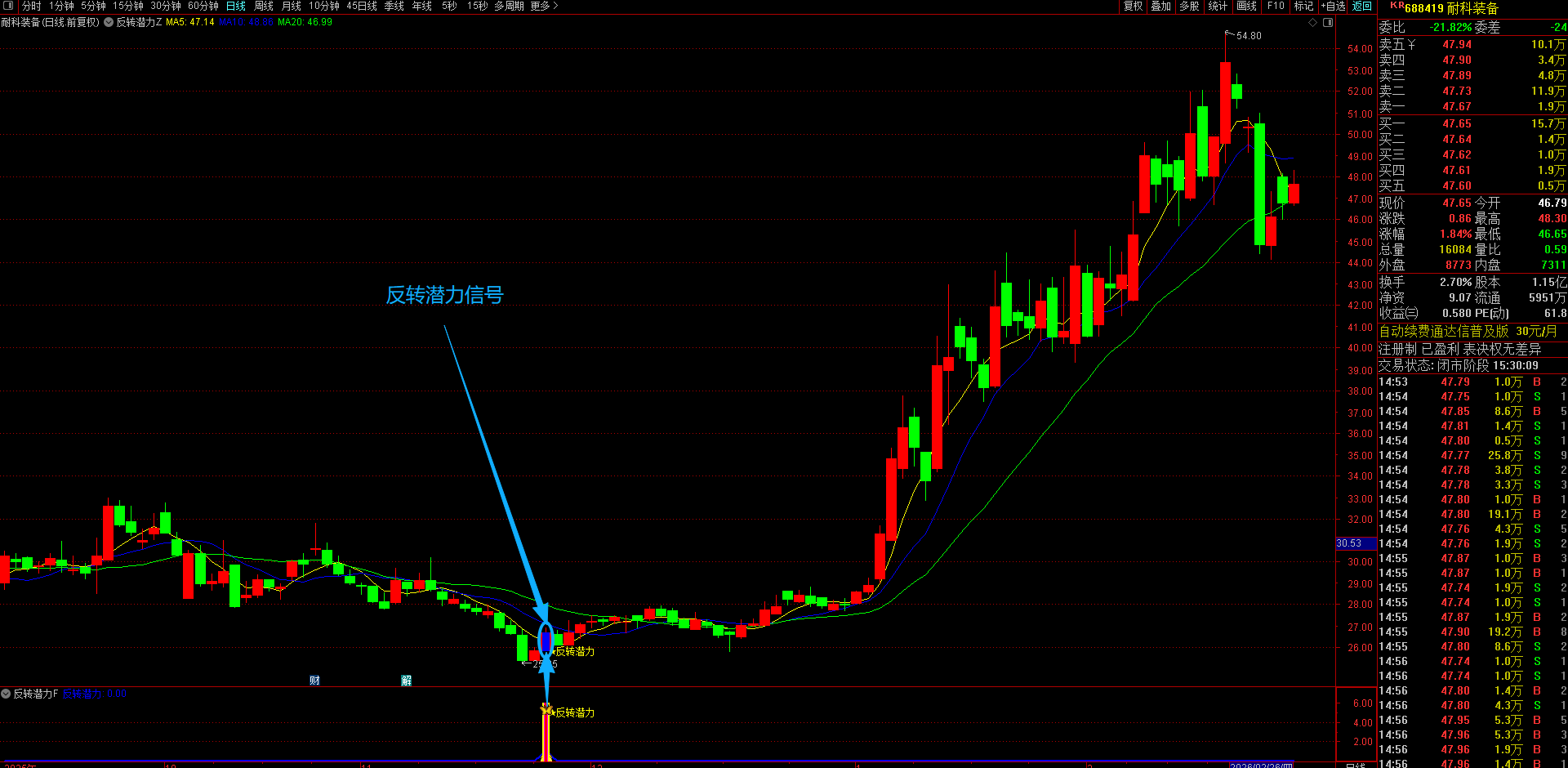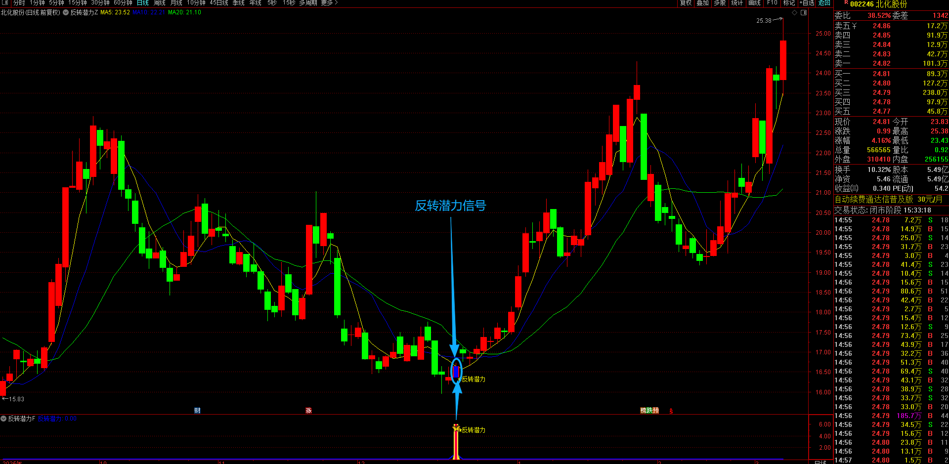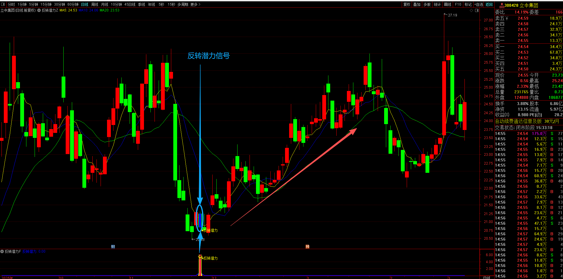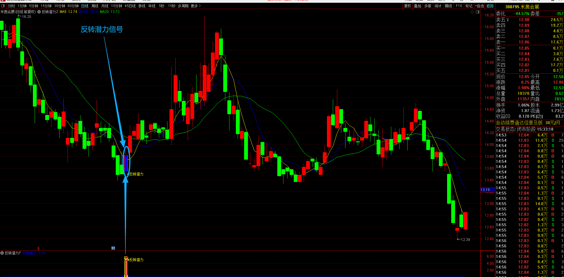 (通达信【反转潜力】主副图选股指标,专买在主力拉升爆发前夜金股提前潜伏不用追高 手机电脑通达信通用。)